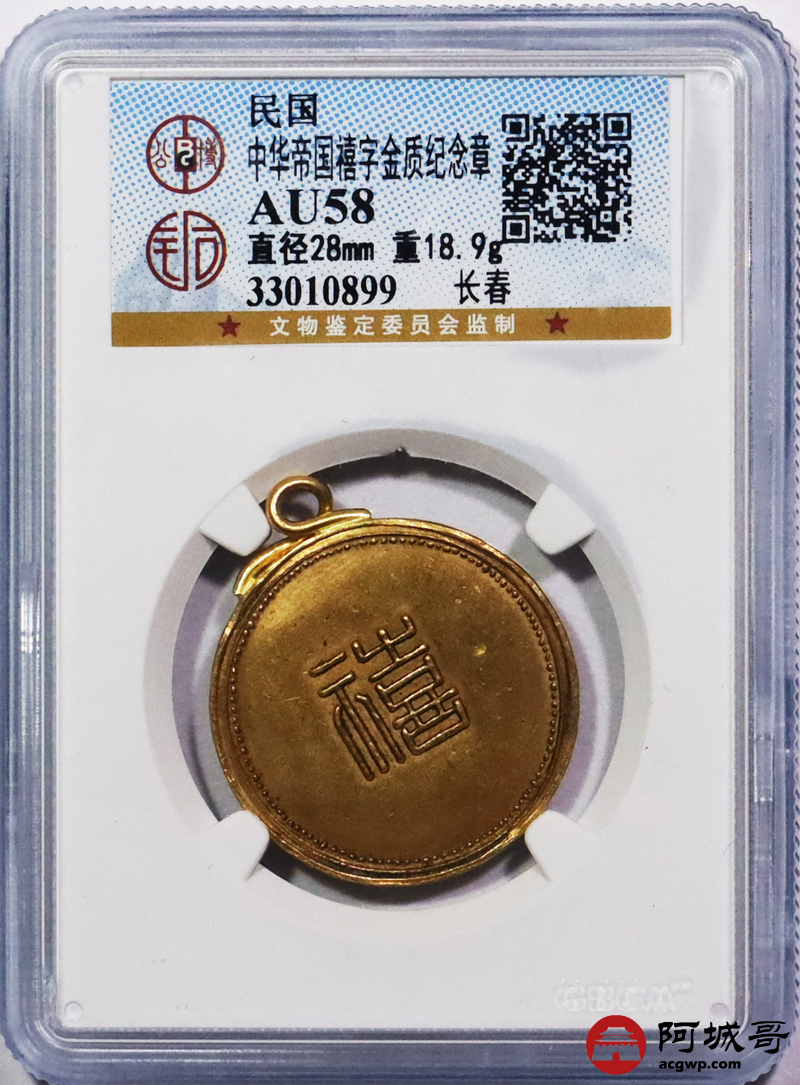 Lot:3232 民国时期 长春 禧字金质纪念章一枚,较少见 GBCA AU58 评级编号:33010899