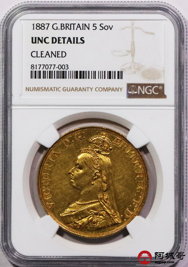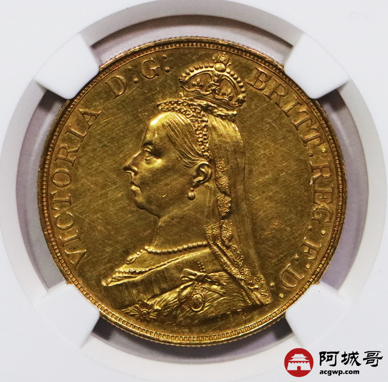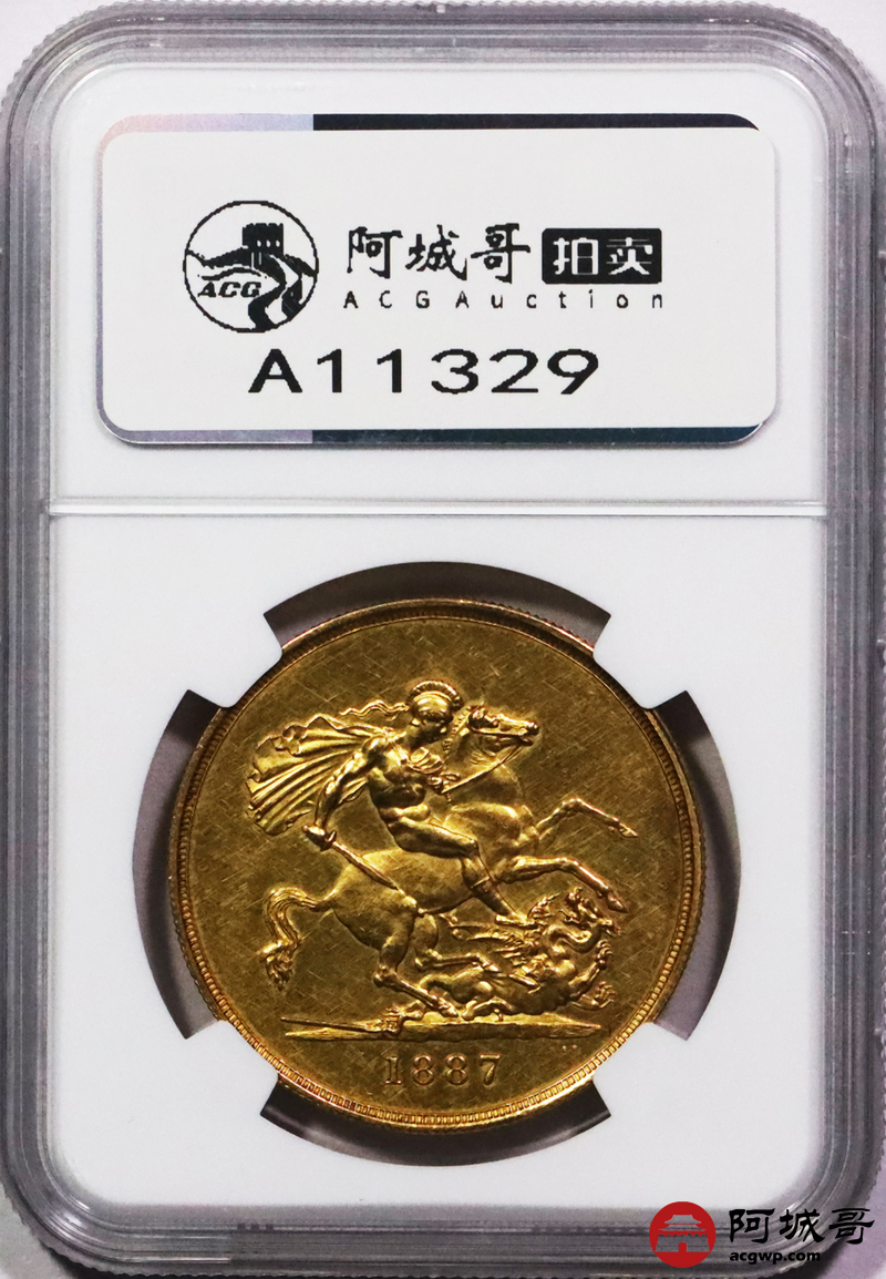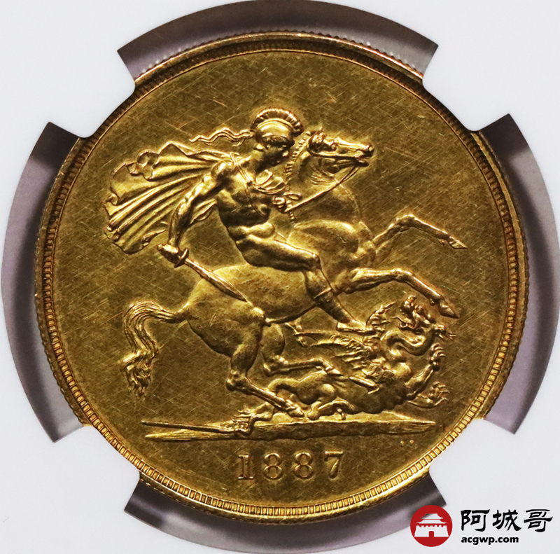 Lot:3647 1887年维多利亚高冠背马剑金币一枚,高浮雕,铸工精美 NGC UNC 评级编号:8177077-003