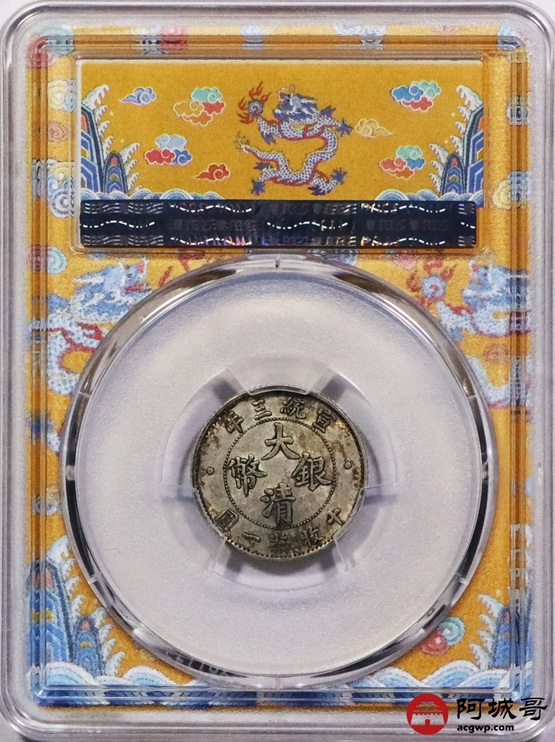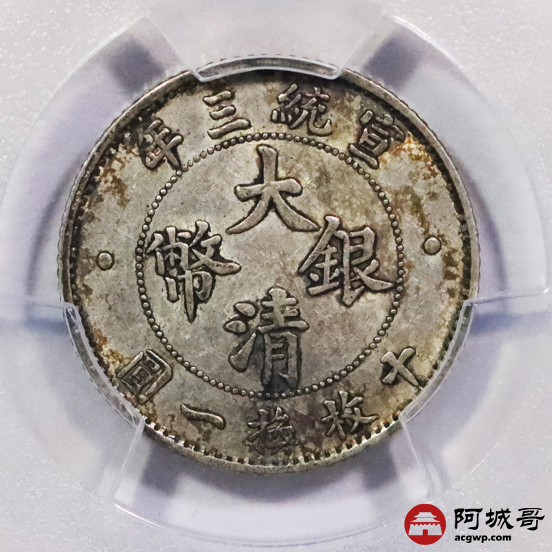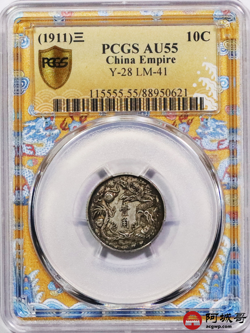 Lot:3092 1911宣统三年大清壹角银币一枚,原汁原味,酱味包浆 PCGS AU55 评级编号:88950621