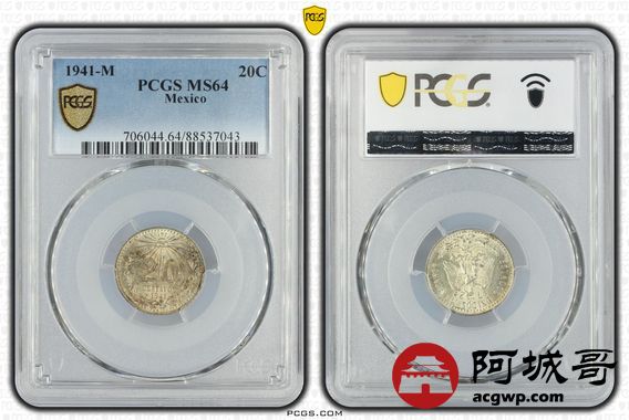 Lot:39 1941M墨西哥鹰洋20C PCGS MS64