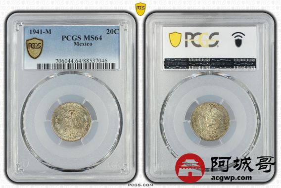 Lot:45 1941M墨西哥鹰洋20C PCGS MS64