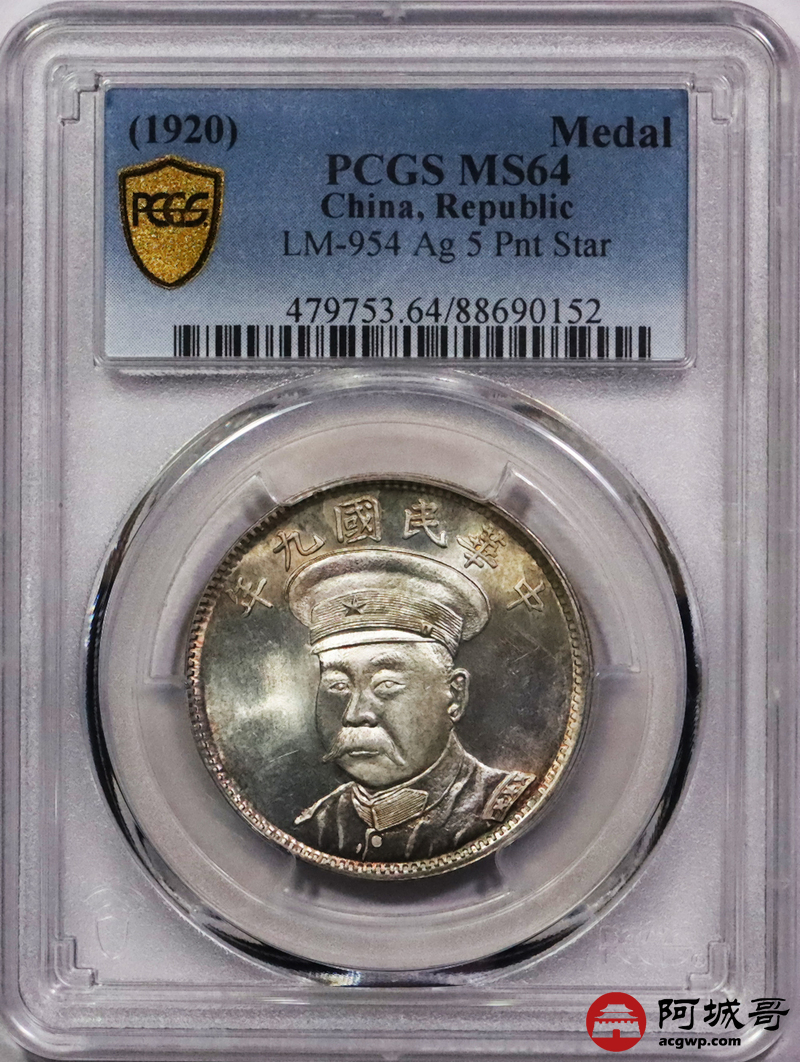 Lot:3190 1920民国九年安庆造币厂造倪嗣冲像银质纪念章一枚,银光四射,淡彩,打制极其精美,此枚为PCGS 评级亚军分,高于此分数仅2枚PCGS MS64评级编号:88690152