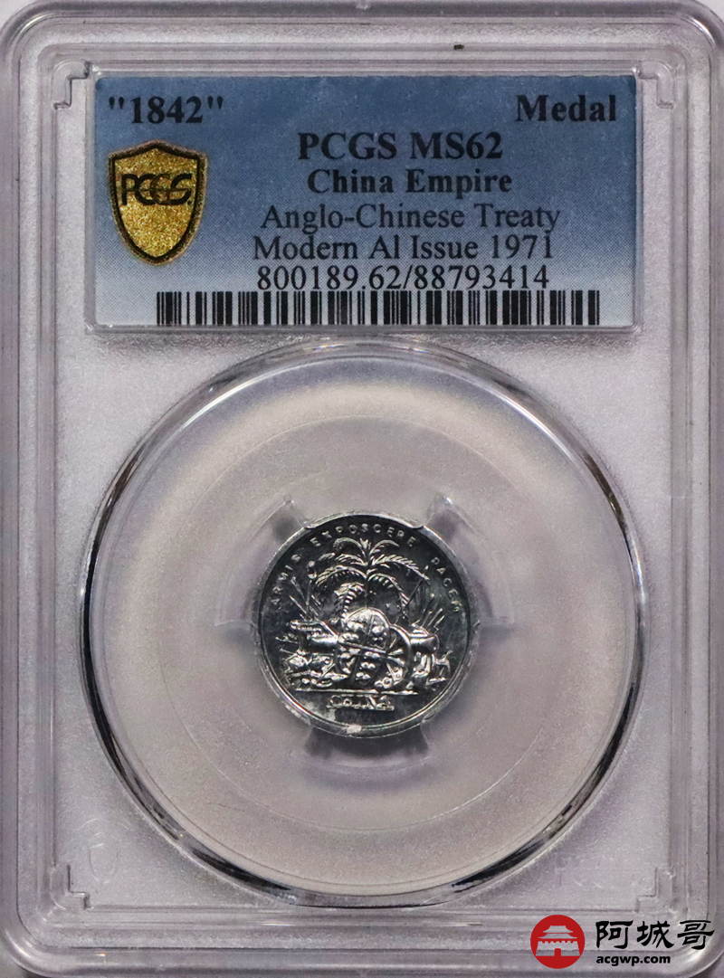 Lot:3731 1842年鸦片战争纪念章,1971年后铸,PCGS MS62评级编号:88793414