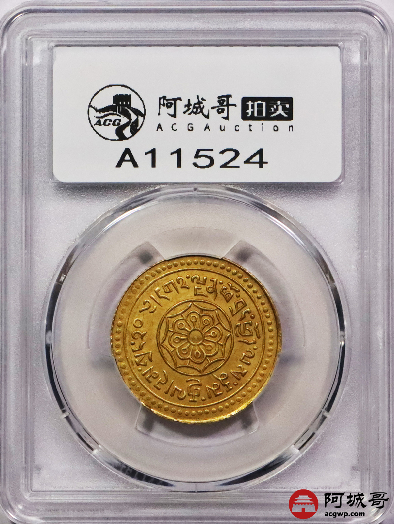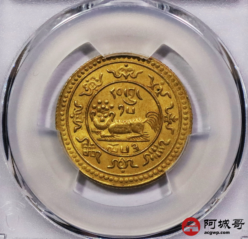 Lot:3222 1919西藏狮图20两金币,格色康铸币厂,品相完好,打制颇佳PCGS MS62评级编号:88611508