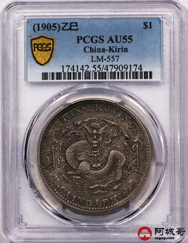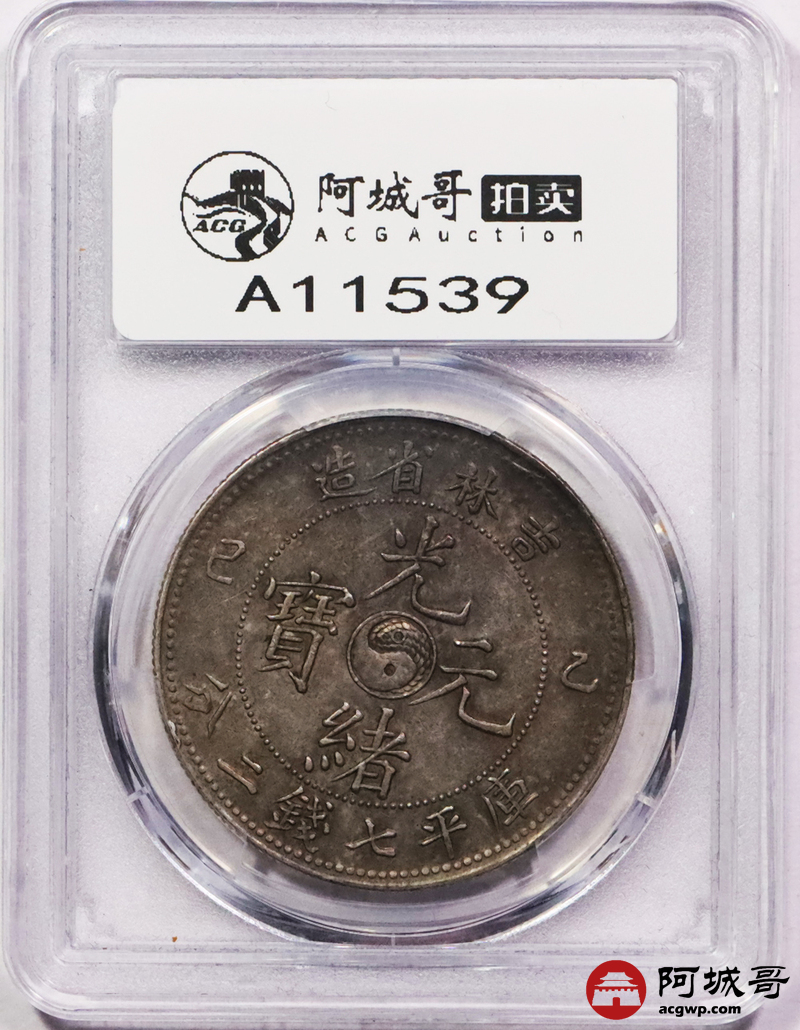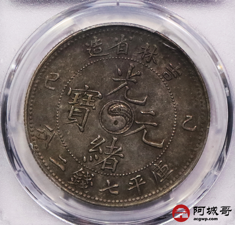 Lot:3399 1905乙巳年吉林省造光绪元宝库平七钱二分银币一枚,深打原味底板 PCGS AU55