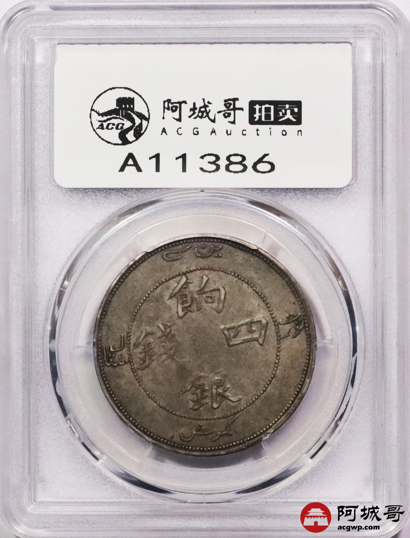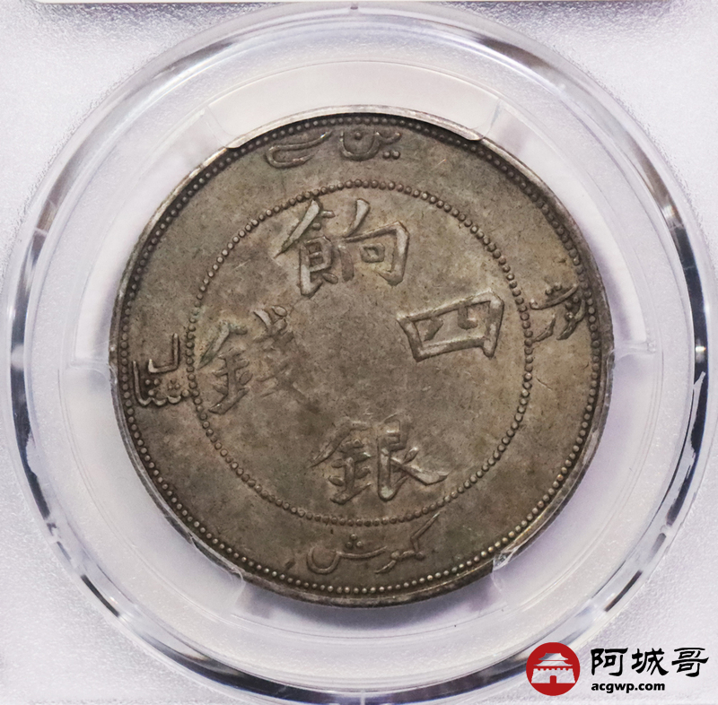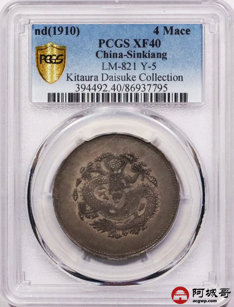Lot:3449 1910新疆饷银四钱银币一枚,北浦大介旧藏, 酱彩深打PCGS XF40 评级编号:86937795