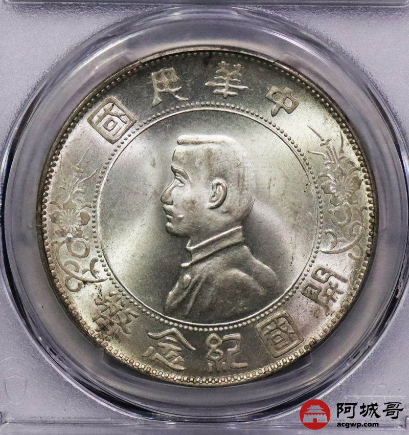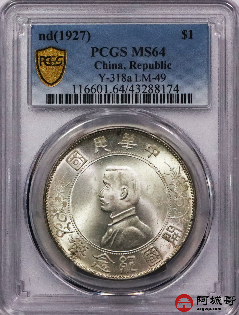 Lot:3106 1927孙中山像开国纪念币壹圆银币一枚,原光底板深打 PCGS MS64评级编号:43288174