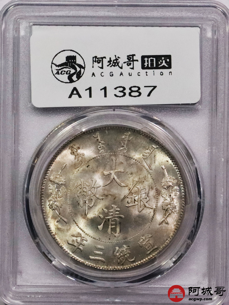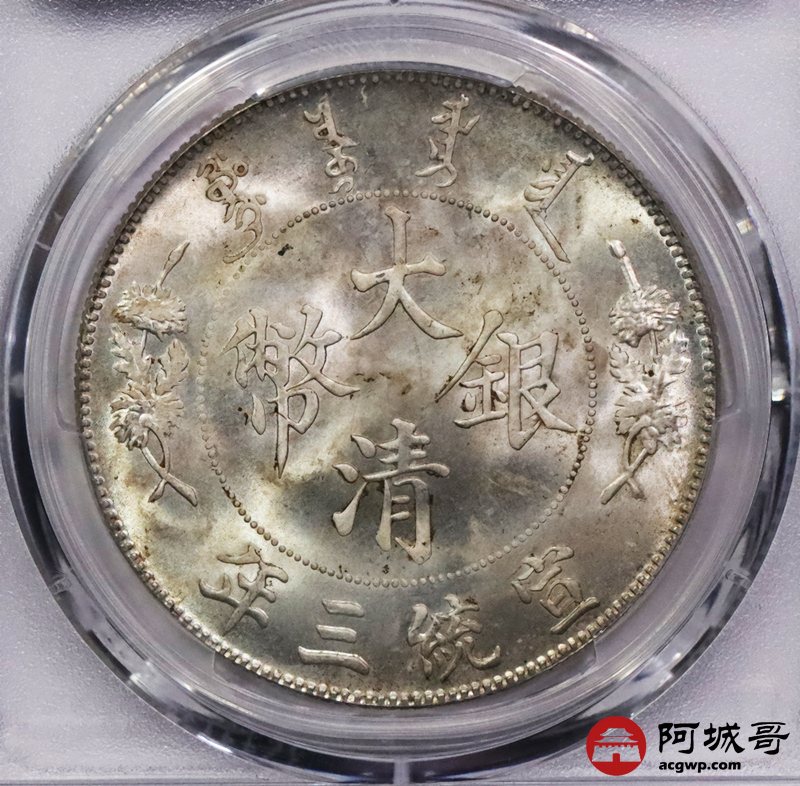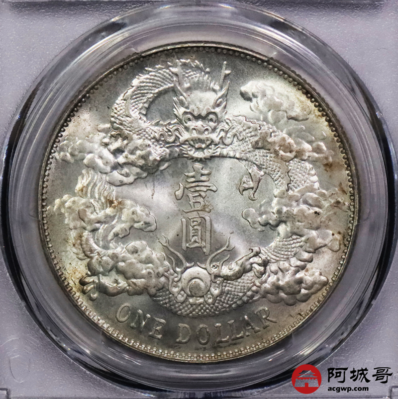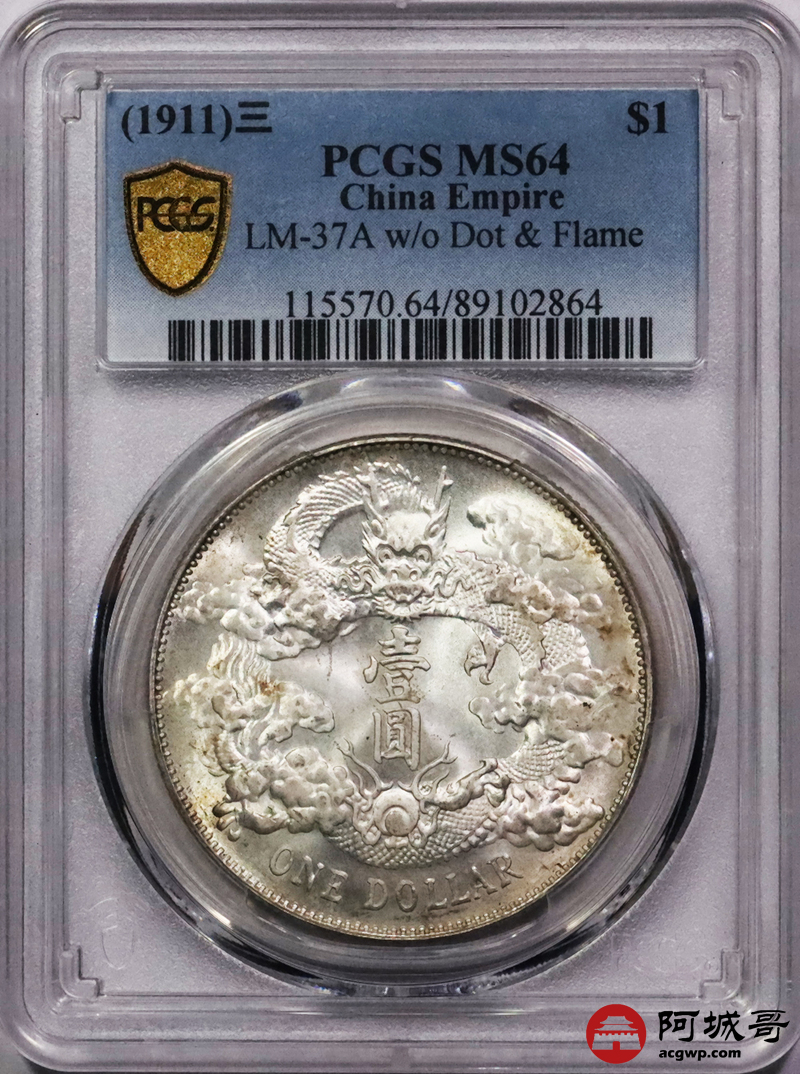 Lot:3035 1911宣统三年大清壹圆银币一枚,深版,丝绸黄油底板,龙鳞花枝饱满,底板光度充沛,出厂状态 PCGS MS64 评级编号:89102864
