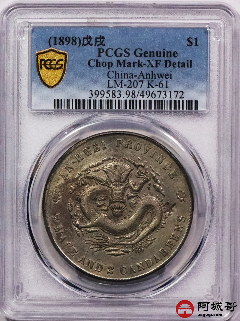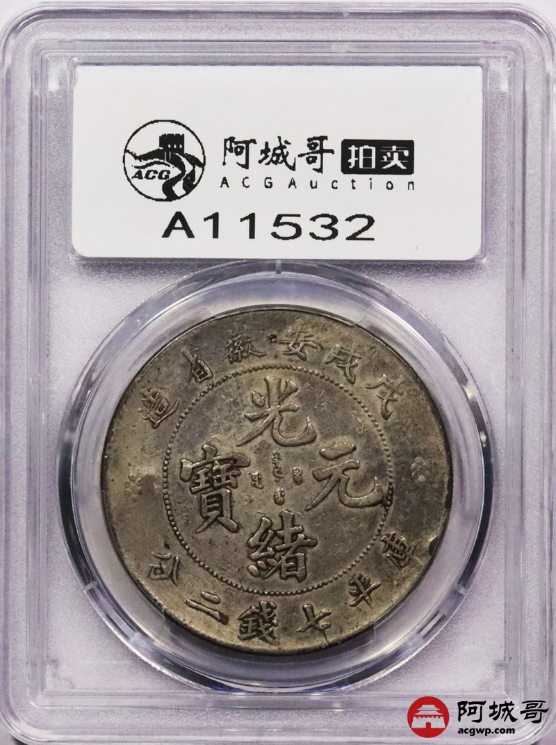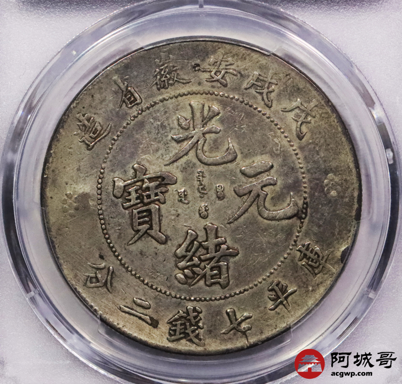 Lot:3284 1898戊戌安徽省造光绪元宝库平七钱二分银币一枚,黄油原味底板 PCGS XF