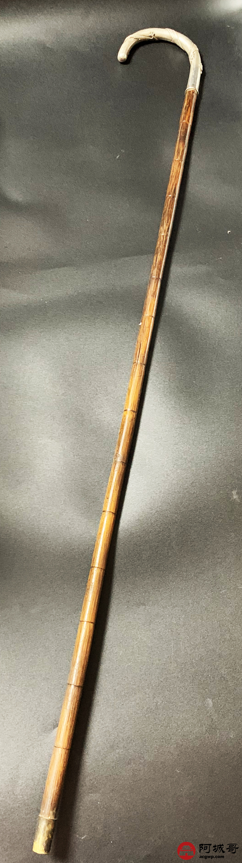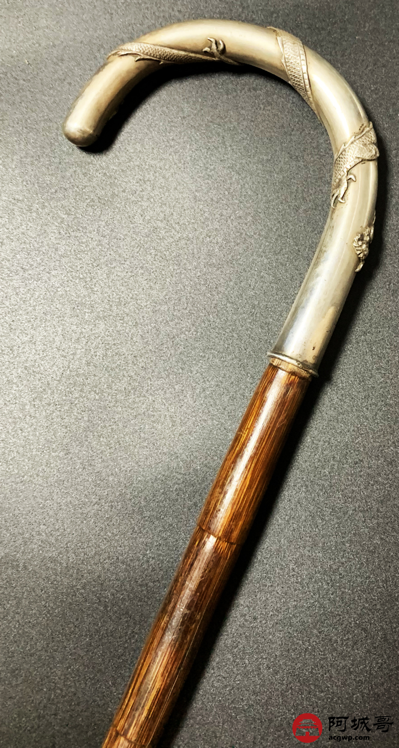 Lot:3837 欧洲回流清末纯银龙纹拐杖手杖文明杖 高度91公分,口径1.5㎝,带家族标和银标,整个龙盘旋手柄,实心竹杆,栩栩如生