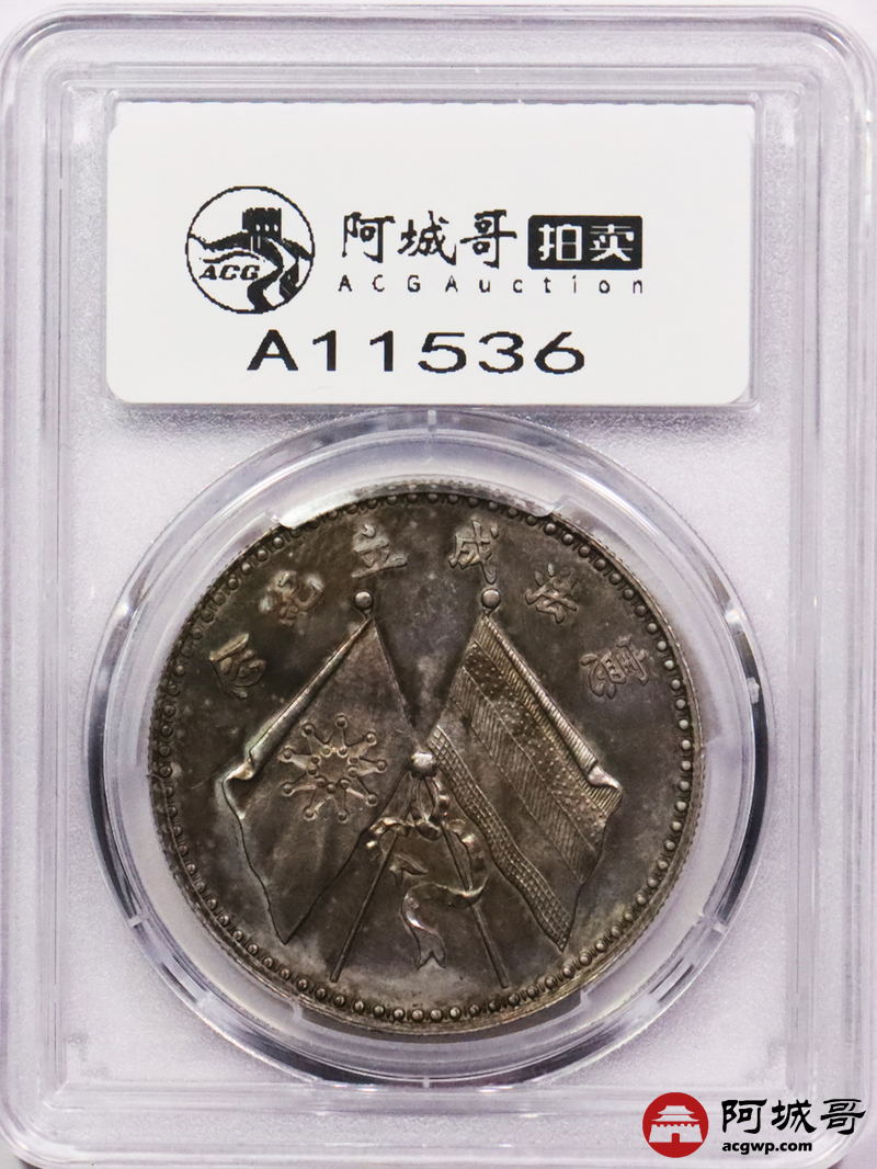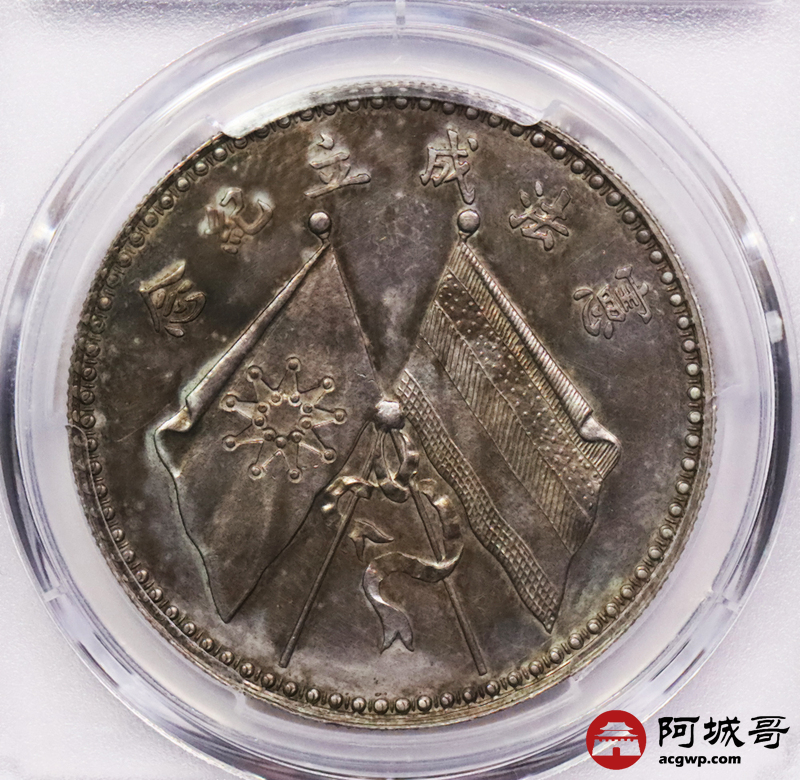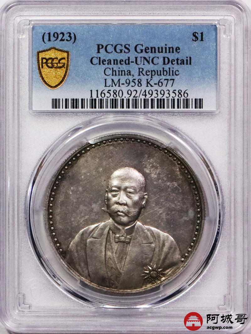 Lot:3161 1923年文装曹锟纪念壹圆银币一枚,底板深打,细节清晰,镜面五彩底板 PCGS UNC
