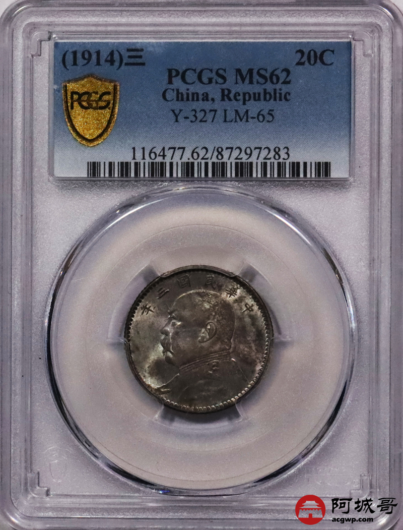 Lot:25 原光 淡彩 民国年大头 两角 PCGS MS 62