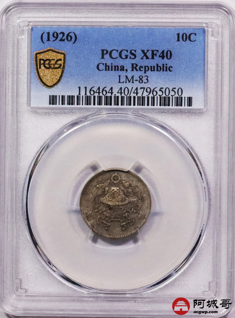 Lot:3176 1926民国十五年龙凤壹角银币一枚,原味PCGS XF40