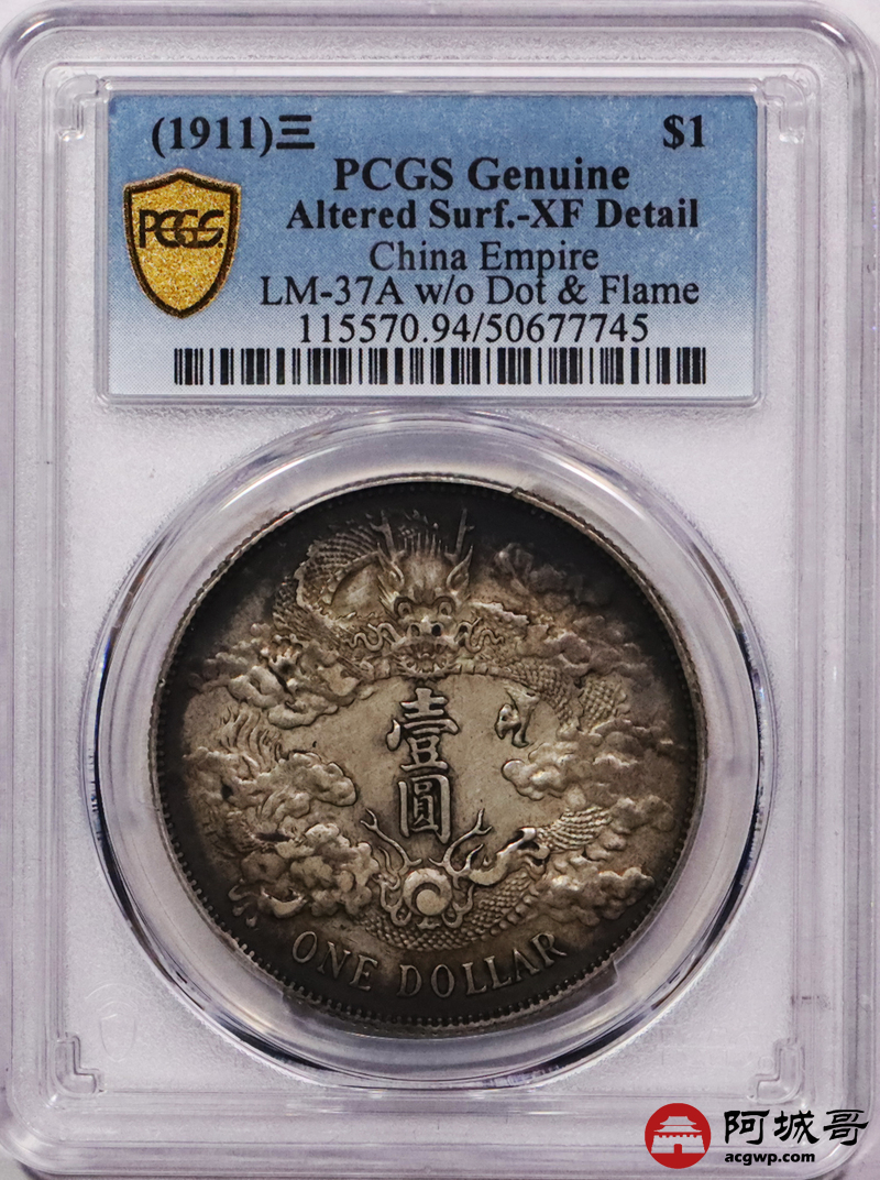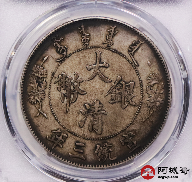 Lot:3039 1911宣统三年大清壹圆银币一枚,原味环彩包浆 PCGS XF