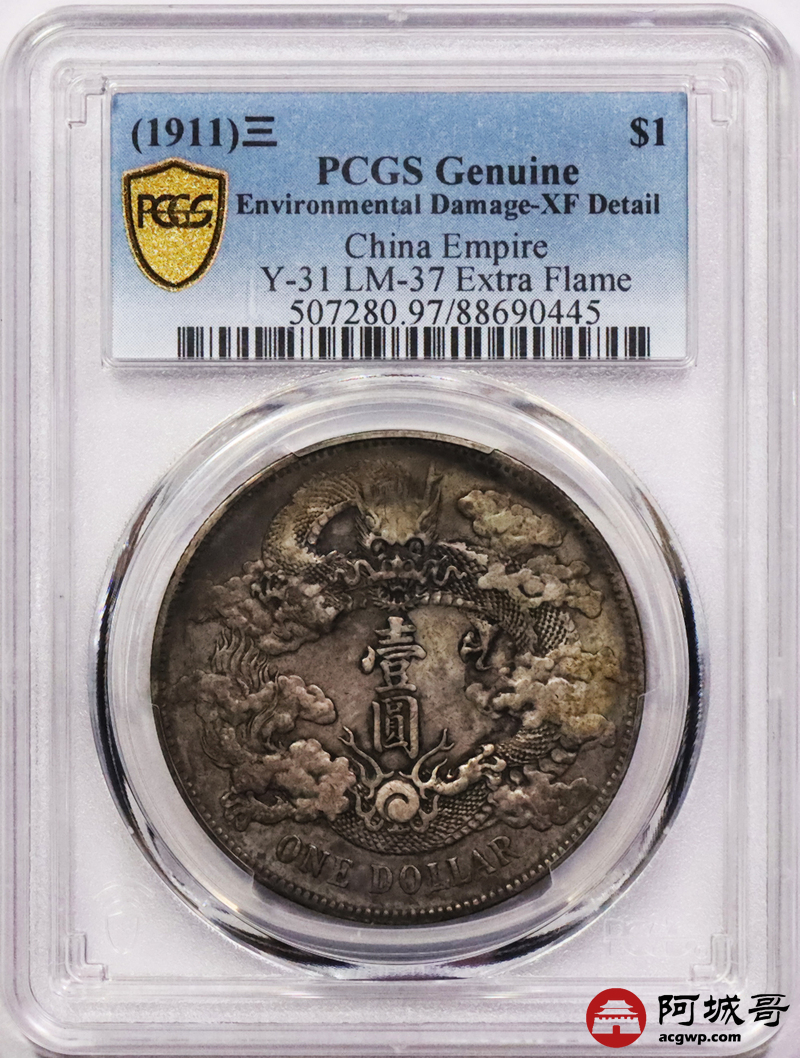 Lot:3040 1911宣统三年大清壹圆银币一枚,原味包浆 PCGS XF