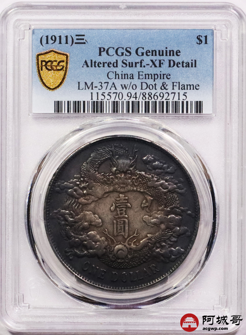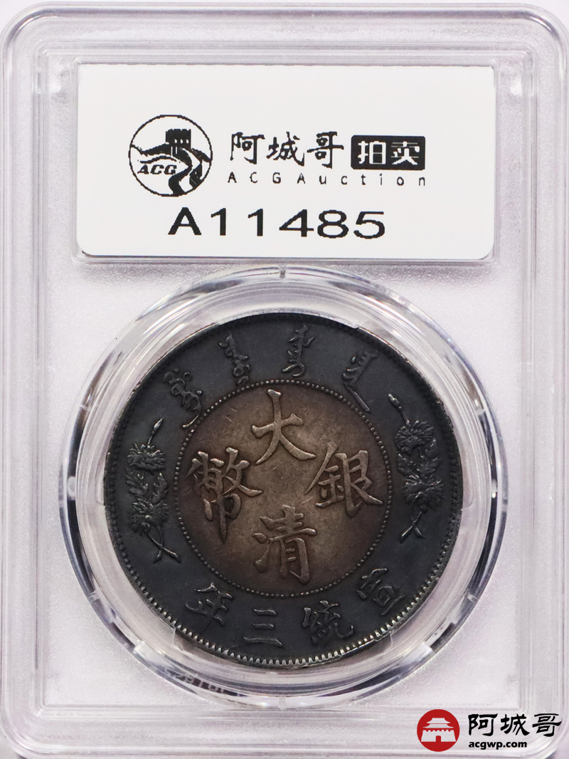 Lot:3057 1911宣统三年大清壹圆银币一枚,环黑彩包浆 PCGS XF