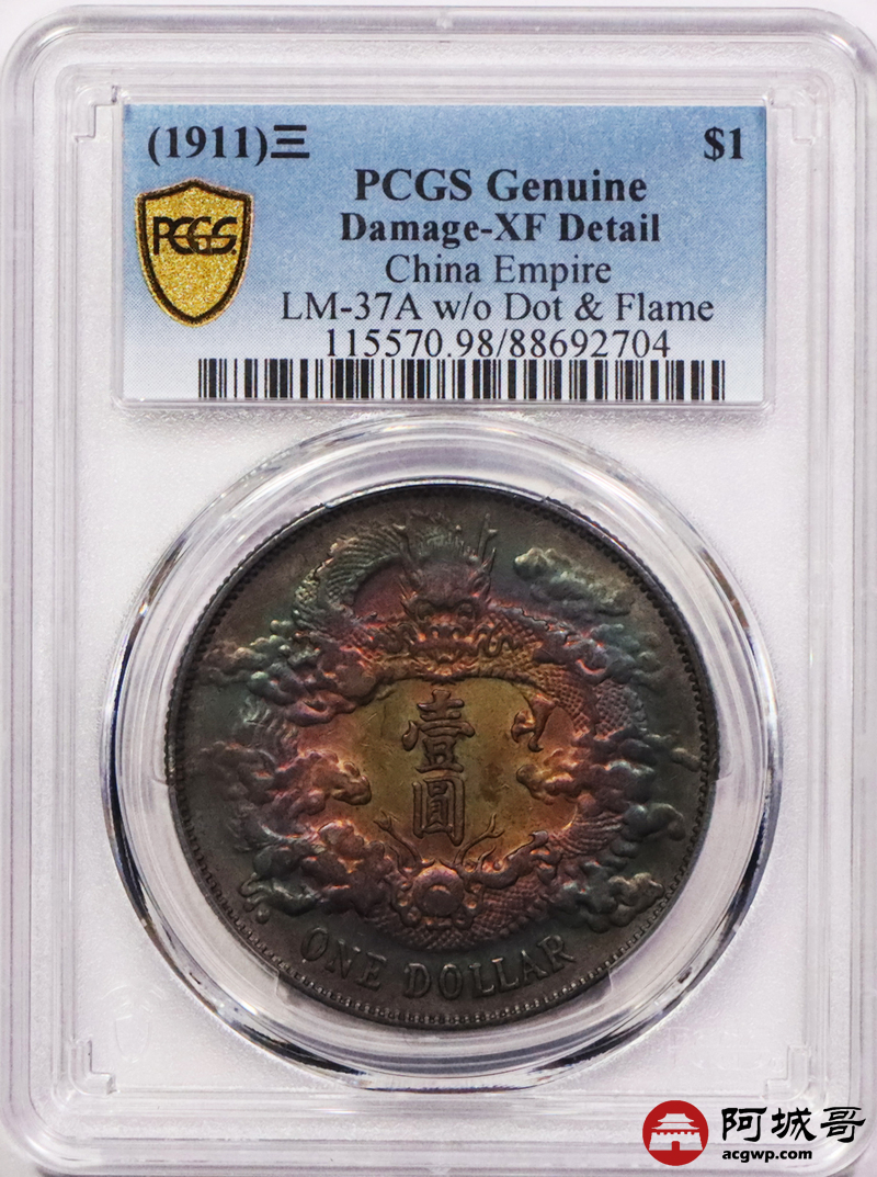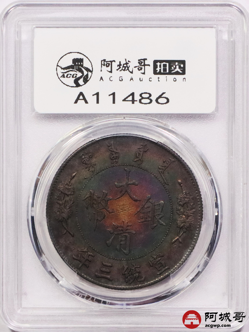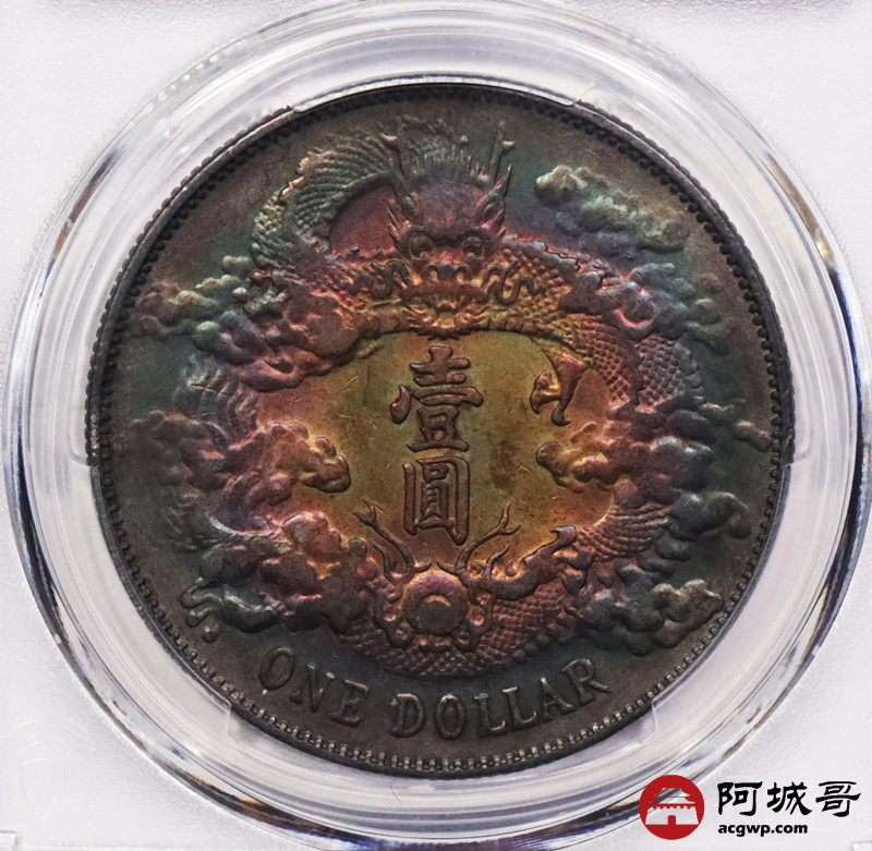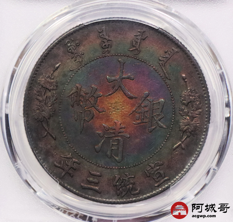Lot:3058 1911宣统三年大清壹圆银币一枚,五彩包浆 PCGS XF