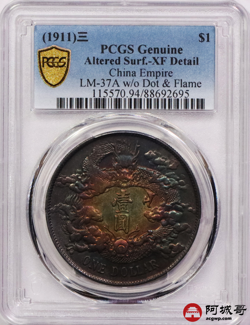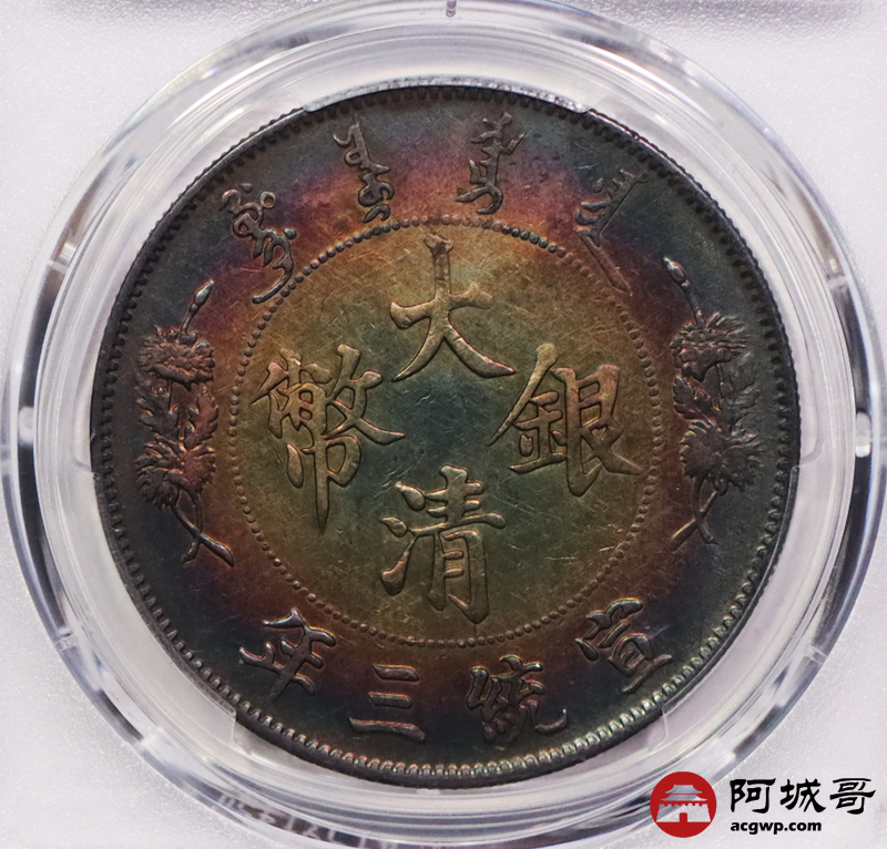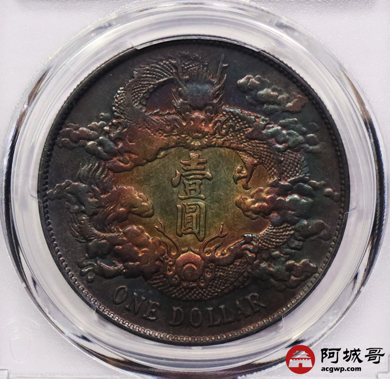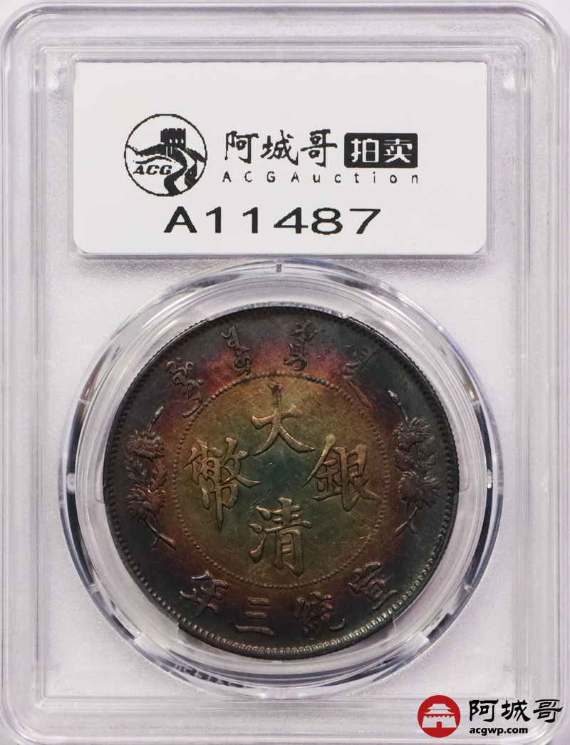 Lot:3043 1911宣统三年大清壹圆银币一枚,五彩包浆 PCGS XF