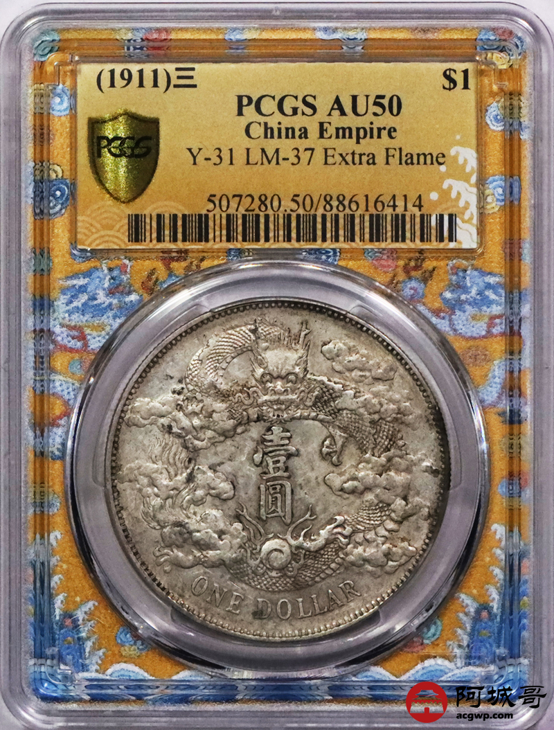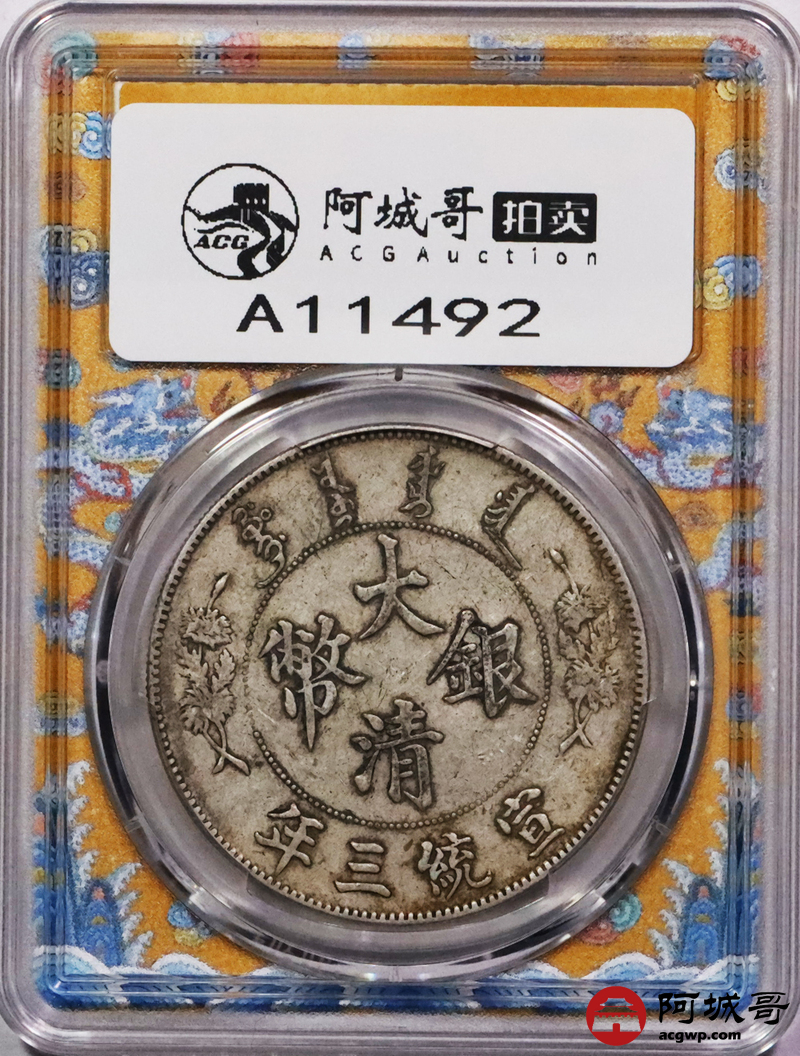 Lot:3038 1911宣统三年大清壹圆银币一枚,原汁原味,深打PCGS AU50