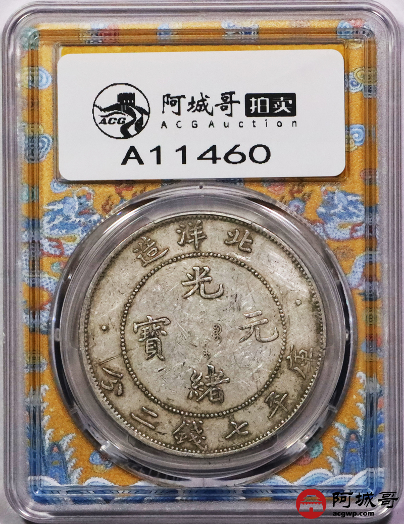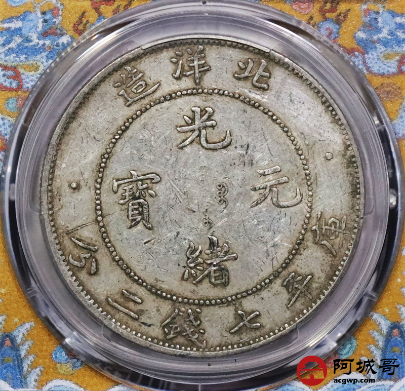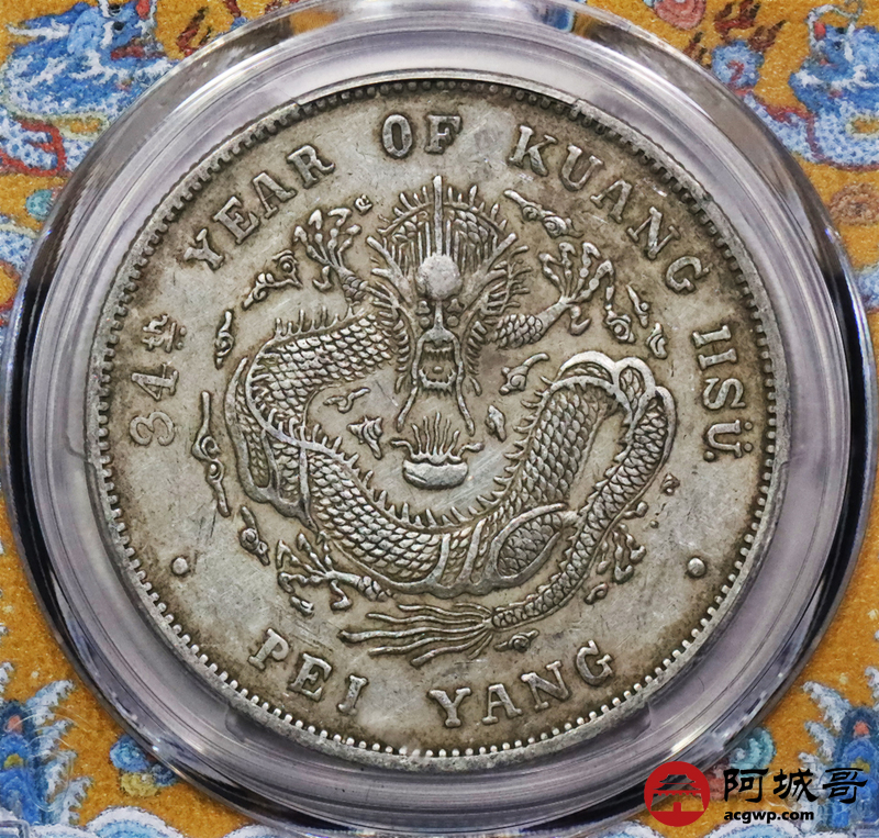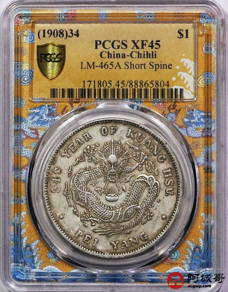 Lot:3308 1908光绪三十四年北洋造光绪元宝库平七钱二分银币一枚,原汁原味,短尾龙版PCGS XF45