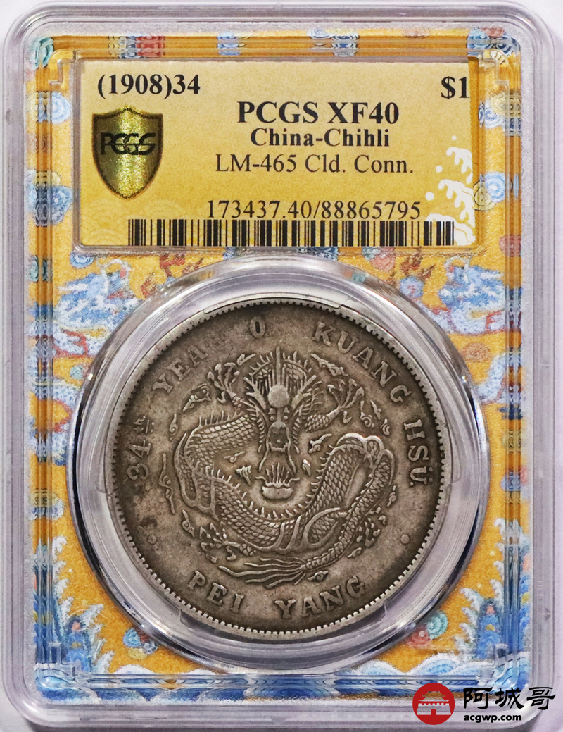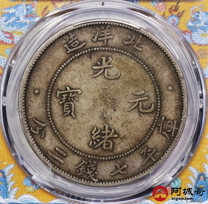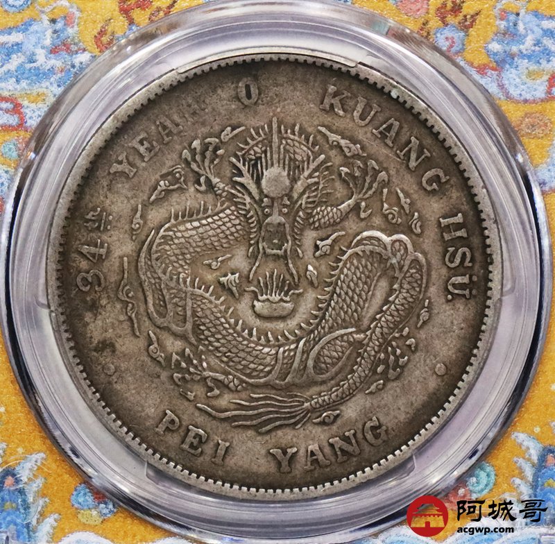 Lot:3309 1908光绪三十四年北洋造光绪元宝库平七钱二分银币一枚,原味包浆PCGS XF40