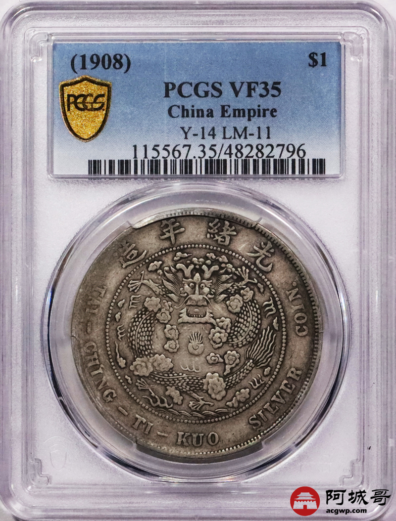 Lot:3016 1908光绪年造造币总厂光绪元宝库平七钱二分银币一枚,原汁原味 PCGS VF35