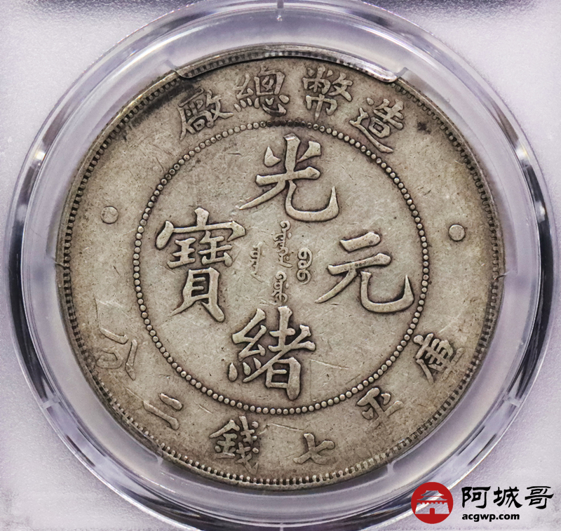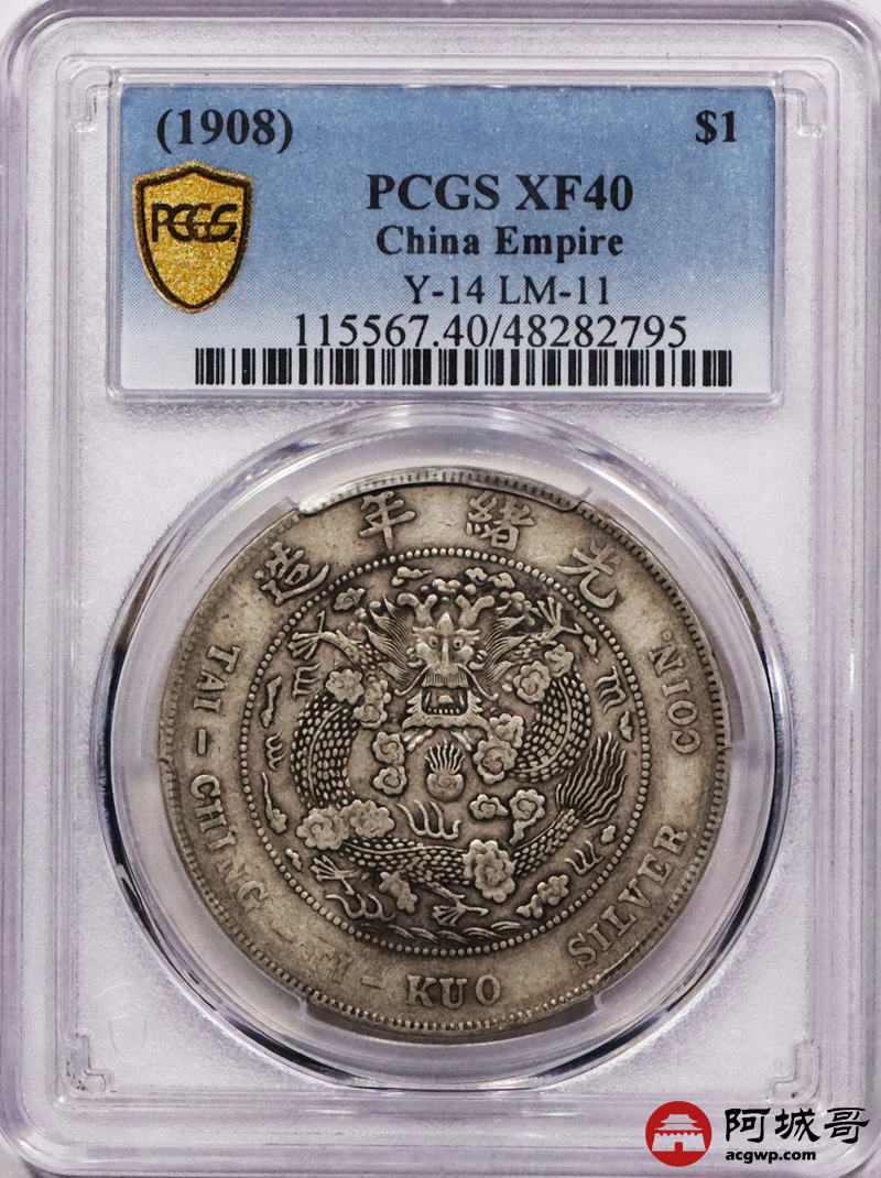 Lot:3013 1908光绪年造造币总厂光绪元宝库平七钱二分银币一枚,原味包浆PCGS XF40