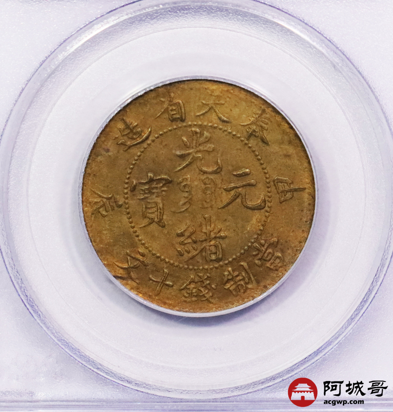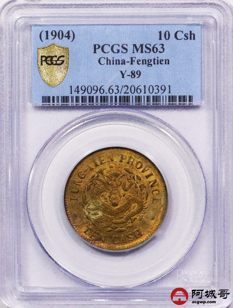 Lot:3357 1904甲辰年奉天省造光绪元宝当制钱十文铜币一枚PCGS MS63