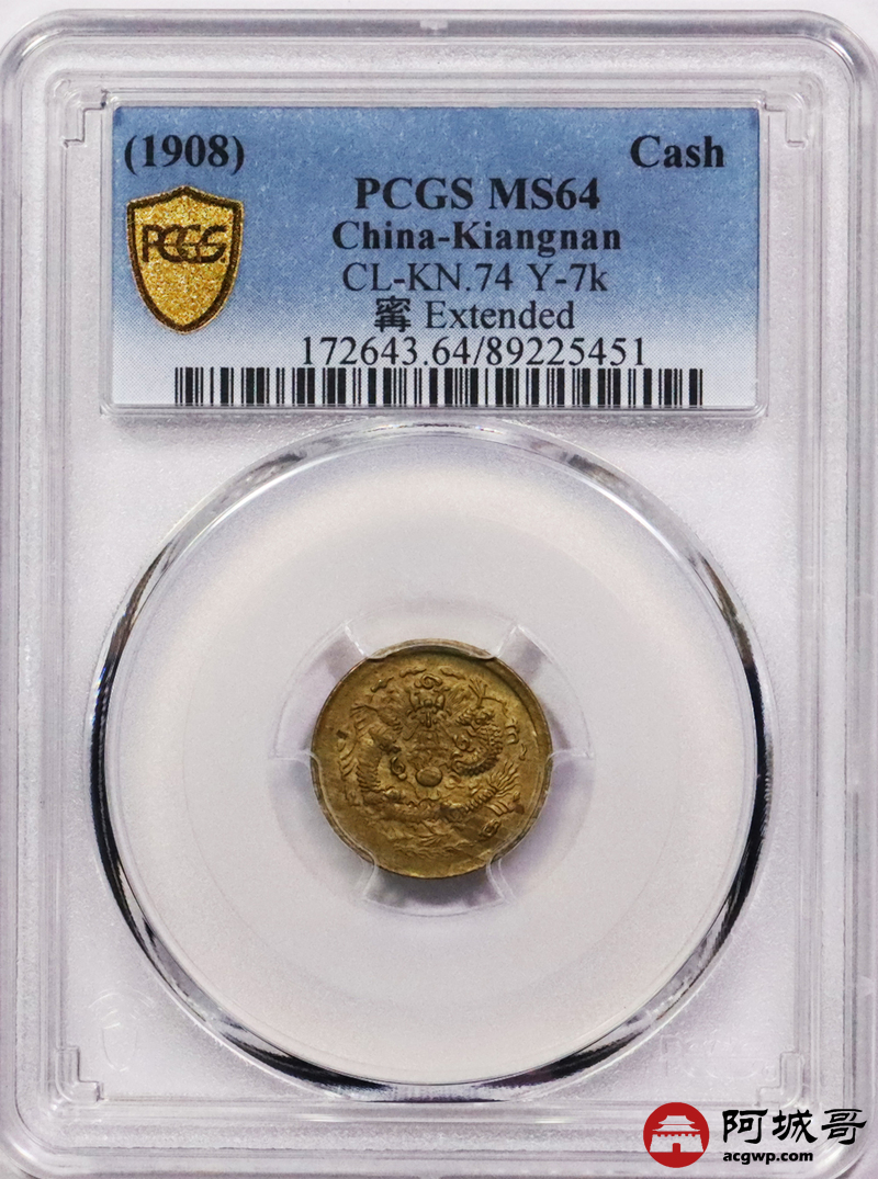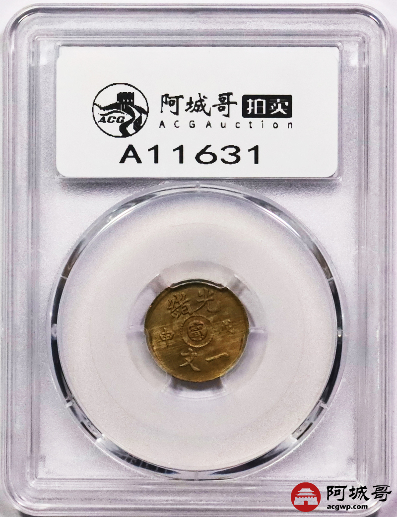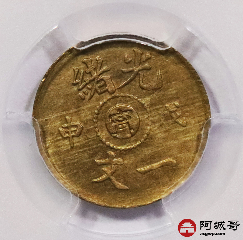 Lot:3541 1908戊申年光绪一文中心“寗”铜币一枚PCGS MS64