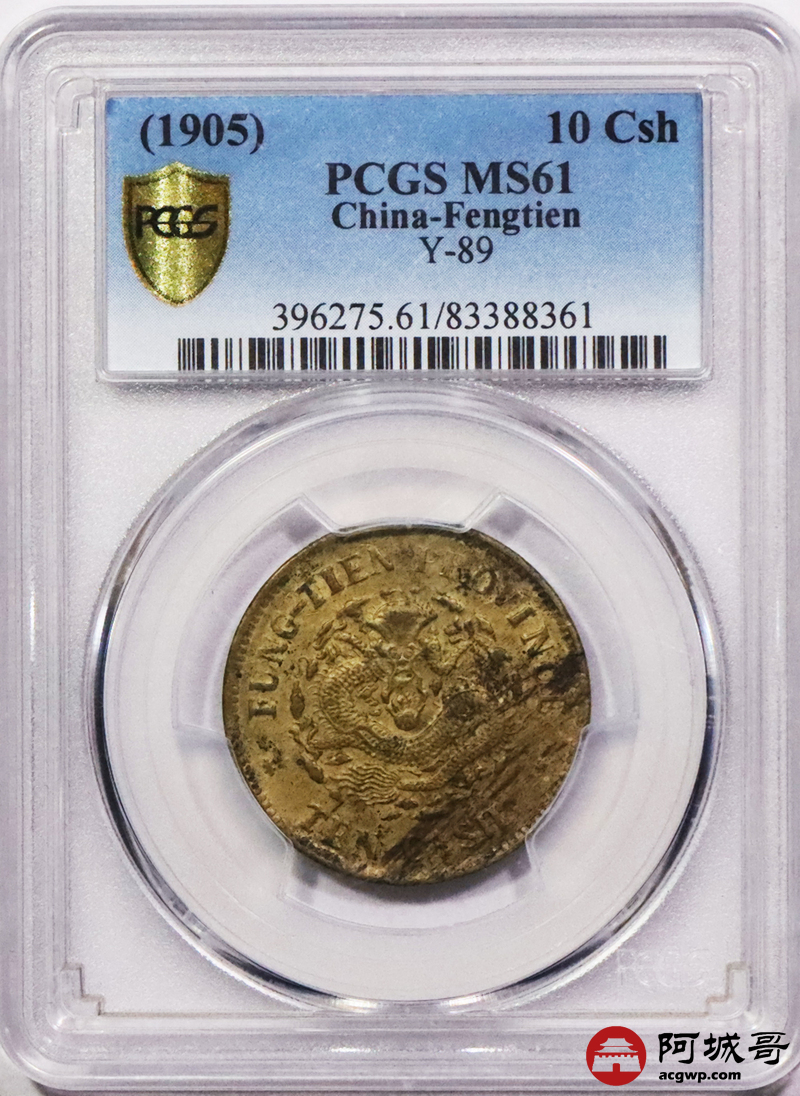 Lot:3359 1905乙巳年奉天省造光绪元宝当制钱十文铜币一枚 PCGS MS61