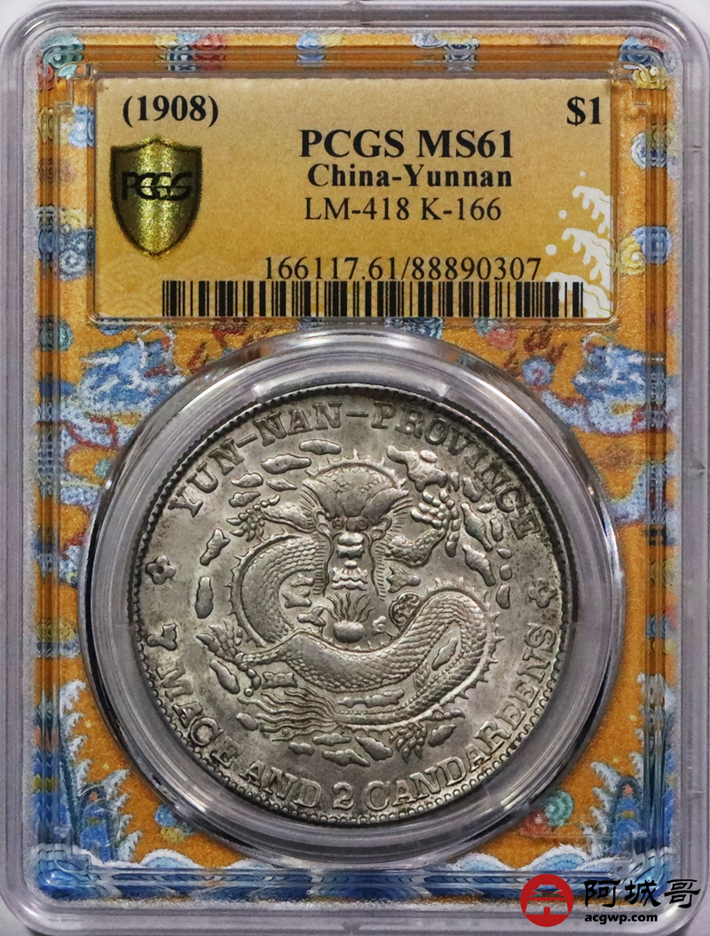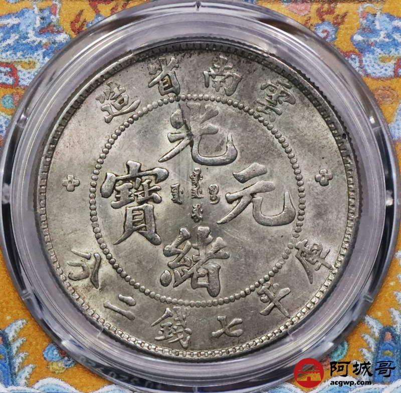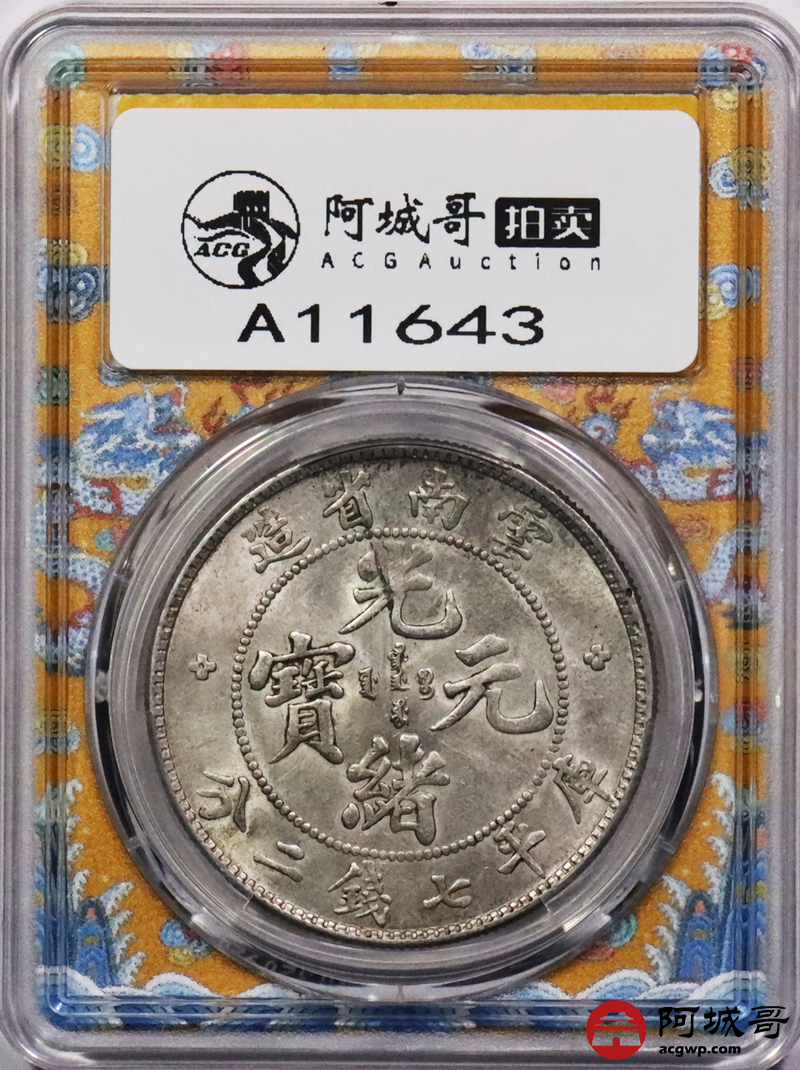 Lot:3409 1908云南省造光绪元宝库平七钱二分银币一枚,原光深打PCGS MS61