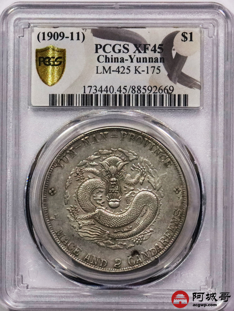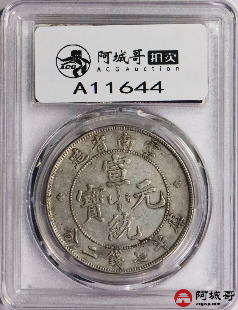 Lot:3412 1909-11云南省造宣统元宝库平七钱二分银币一枚,原汁原味PCGS XF45