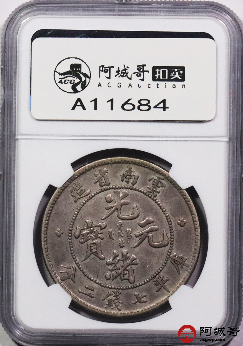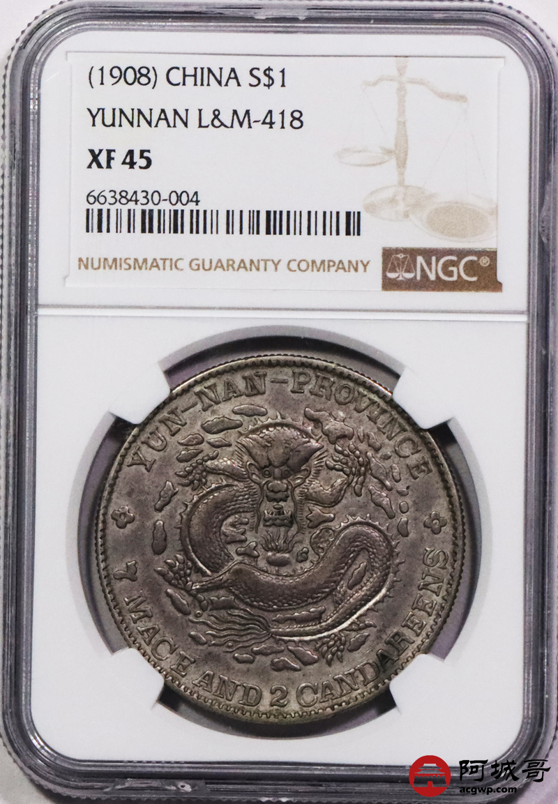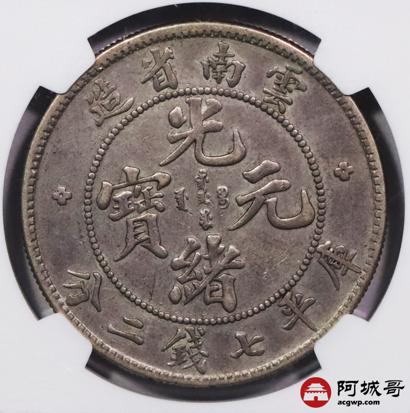 Lot:3410 1908云南省造光绪元宝库平七钱二分银币一枚,灰色包浆NGC XF45