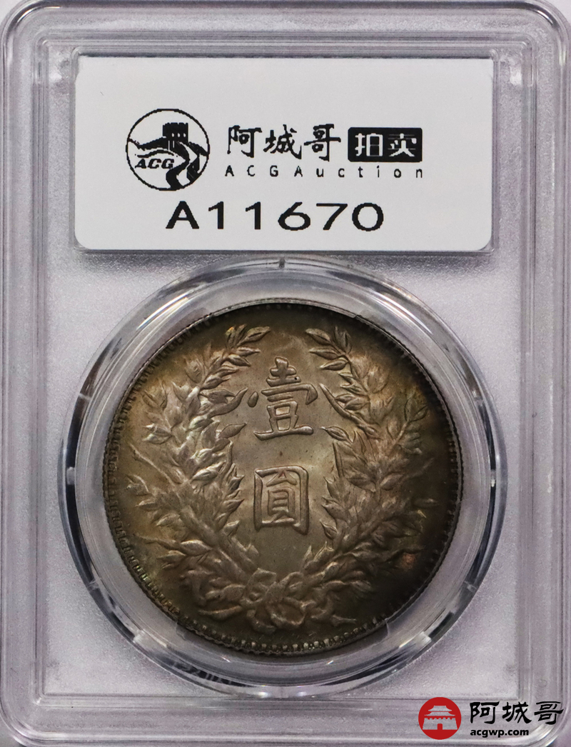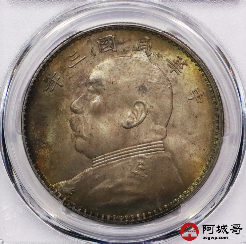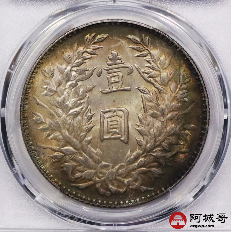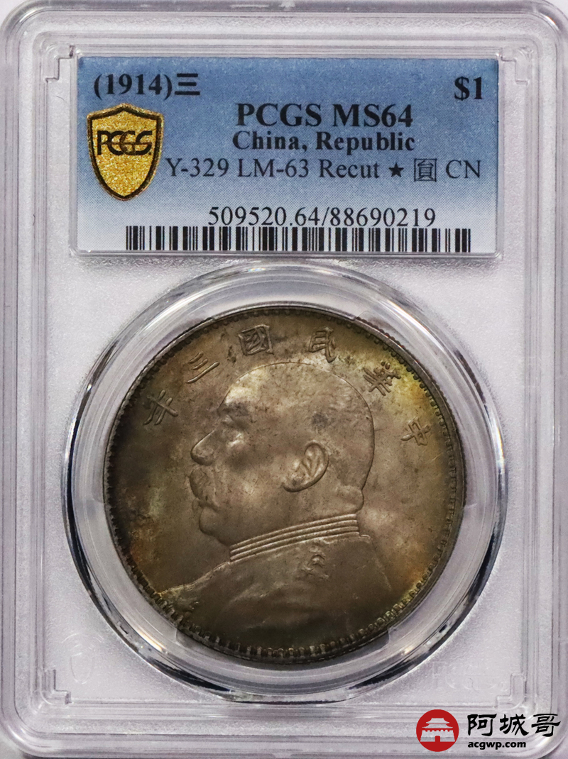 Lot:3478 1914民国三年袁世凯像壹圆银币一枚,厚重五彩包浆,PCGS MS64