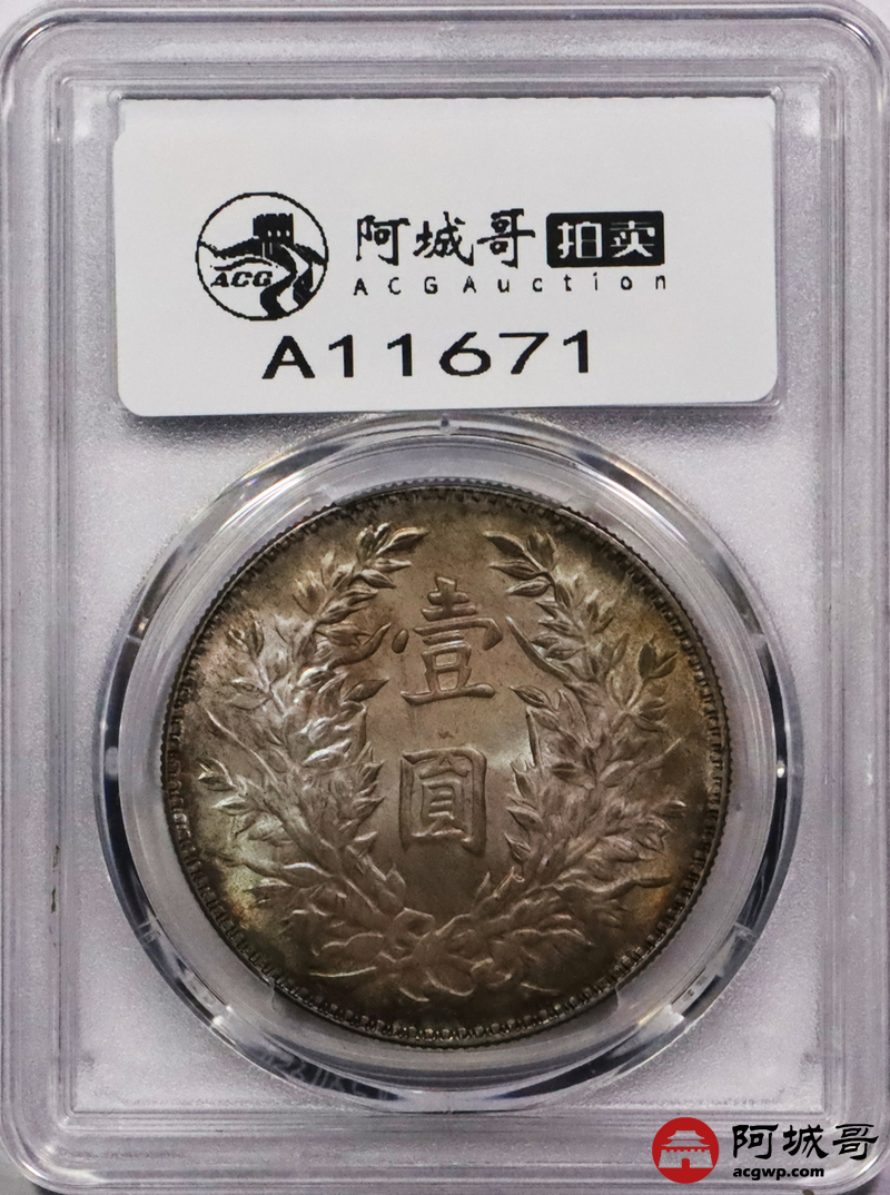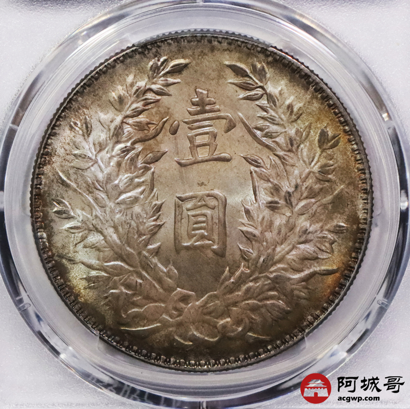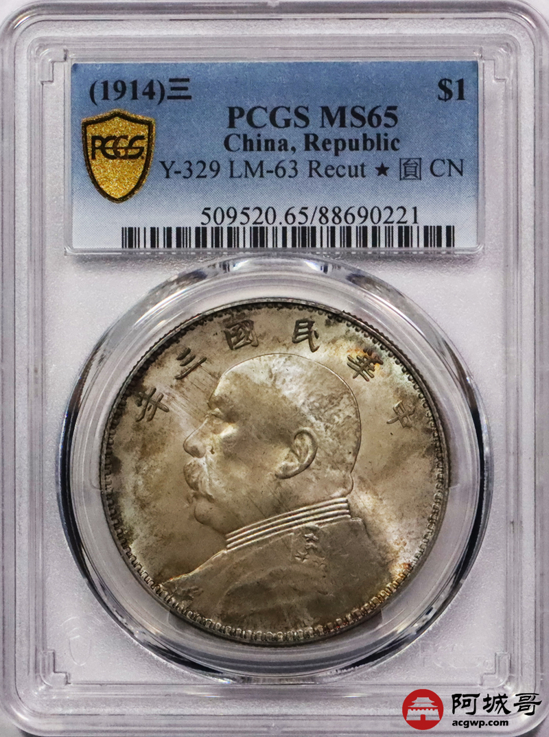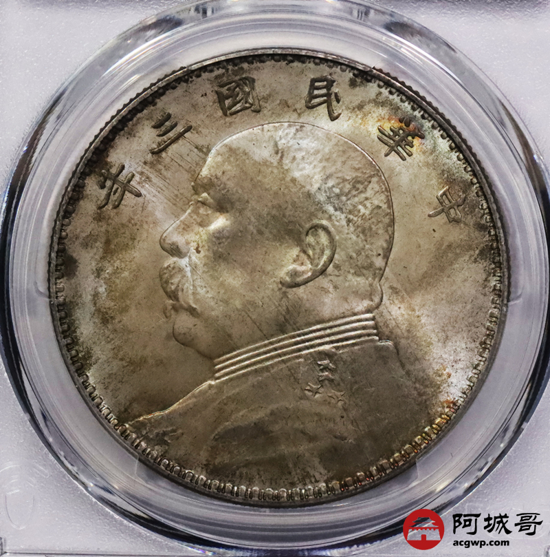 Lot:3476 1914民国三年袁世凯像壹圆银币一枚,黄油转光,五彩包浆PCGS MS65