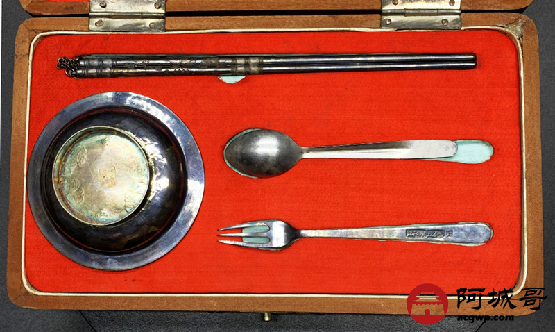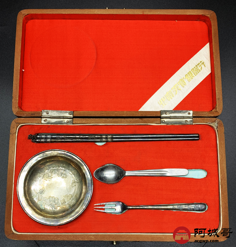 Lot:3862 民国时期 北京“天宝”款 银餐具一套 带原装包装盒