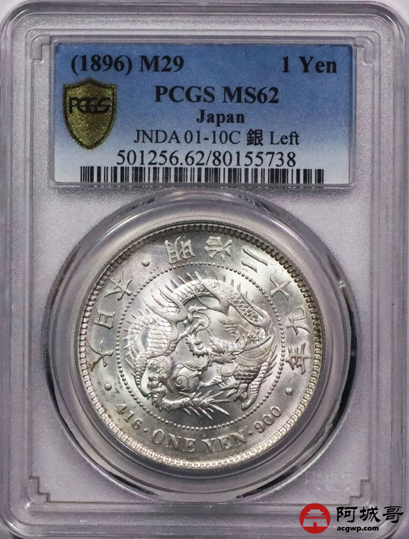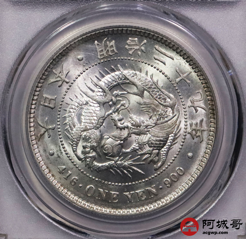 Lot:3746 1896日本明治二十九年壹圆银币一枚,原光四射左银丸PCGS MS62