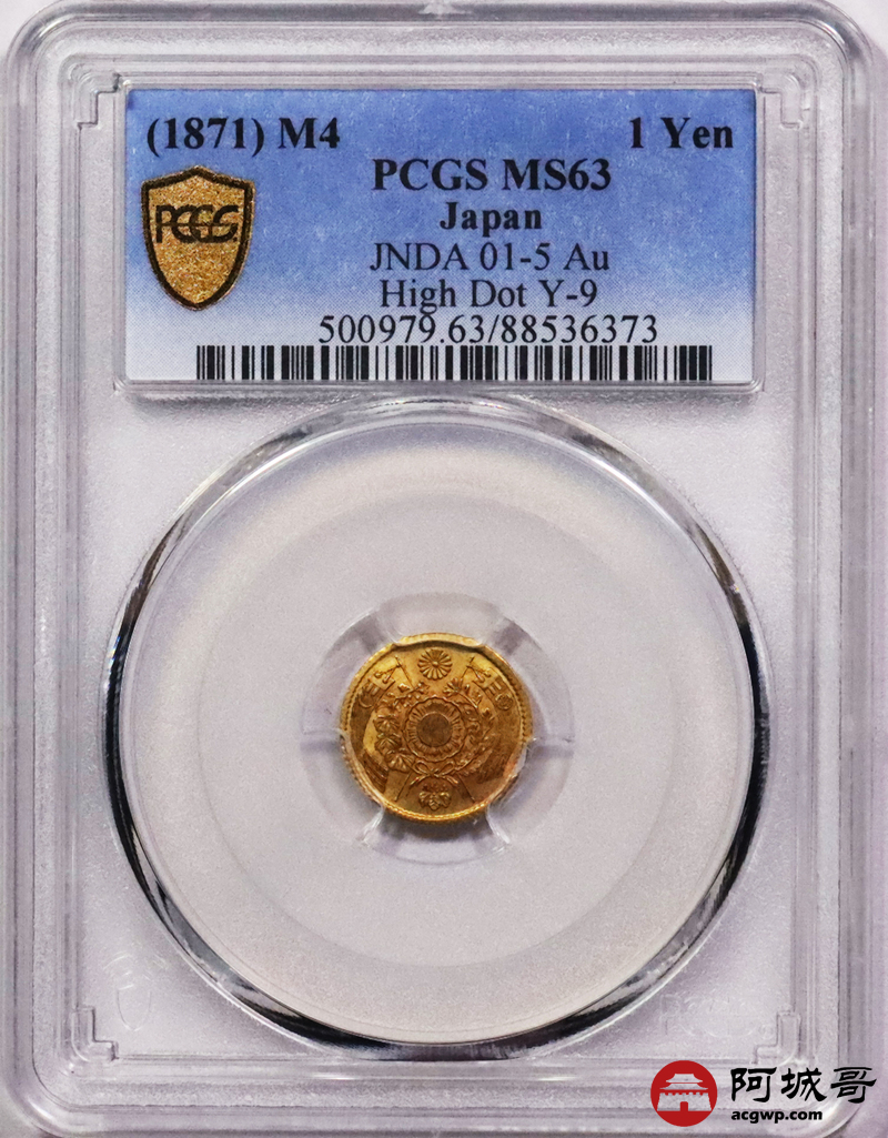 Lot:3677 1871日本明治四年一圆金币一枚PCGS MS63