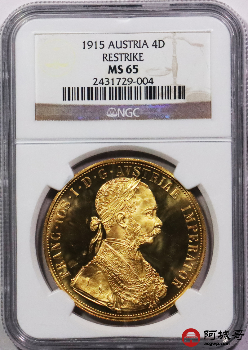 Lot:3650 1915奥地利佛朗茨一世4杜卡特金币一枚 NGC MS65