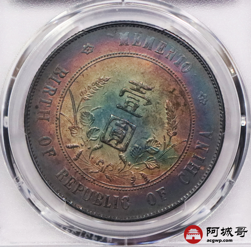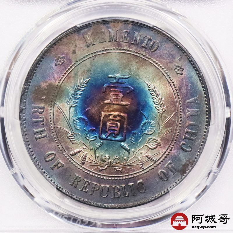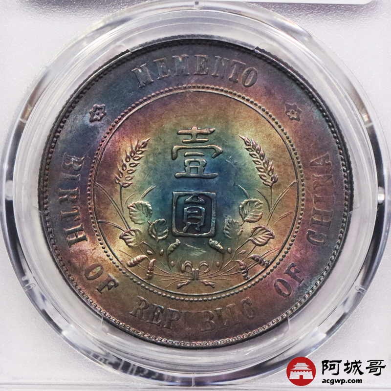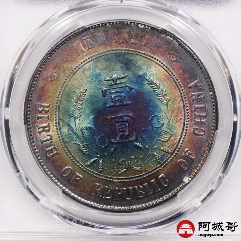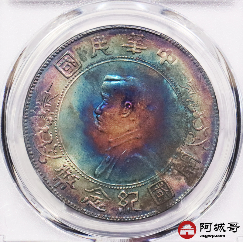 Lot:3634 1927孙中山像开国纪念壹圆银币,炫丽五彩包浆,四枚一组,评级结果不一 PCGS评级