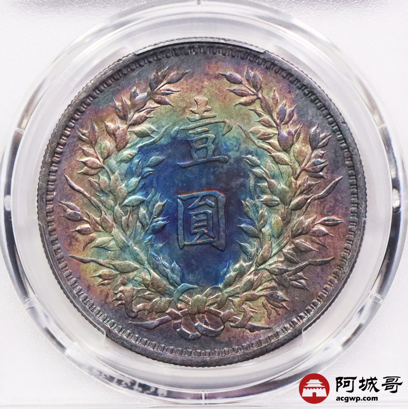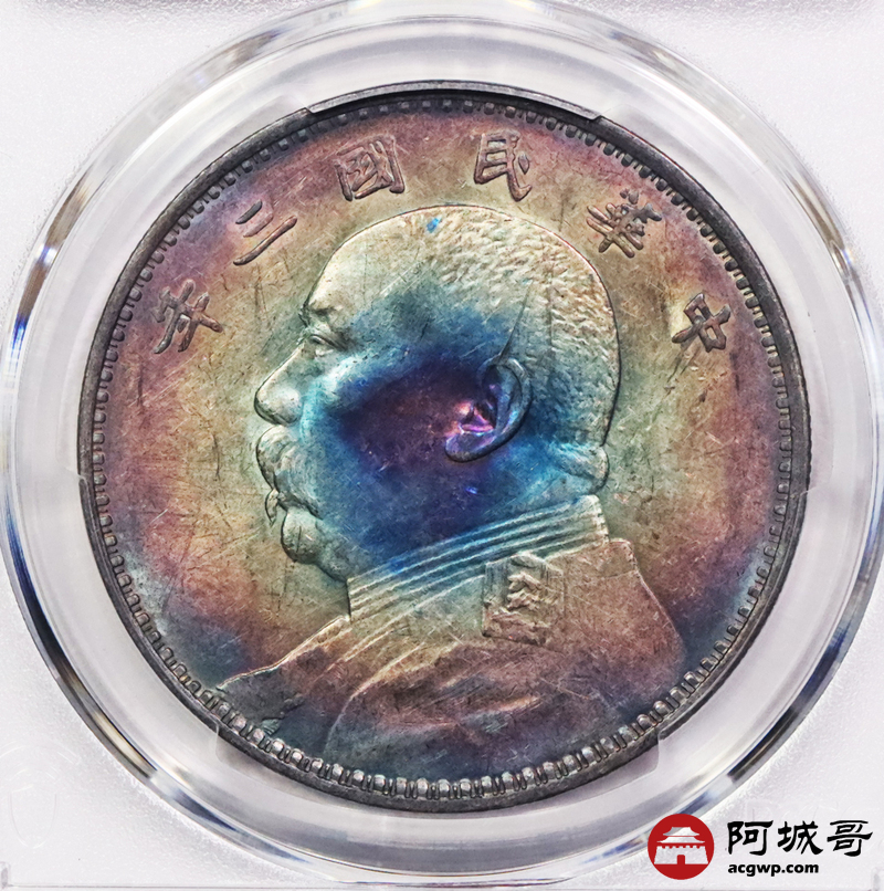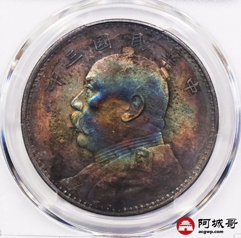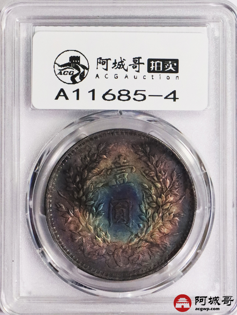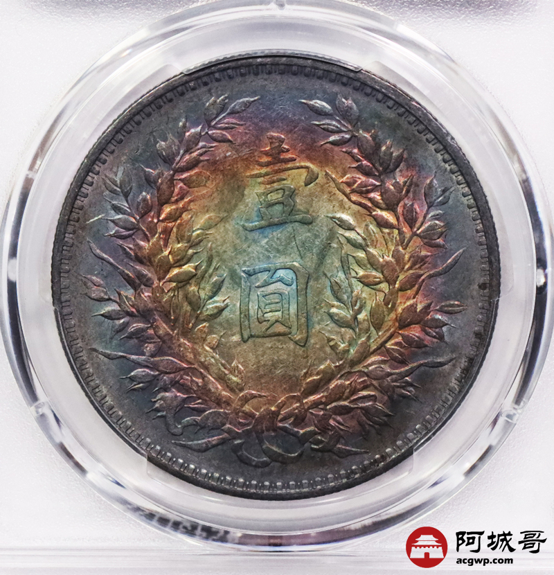 Lot:3637 1914民国三年袁世凯像壹圆银币,炫丽五彩包浆,四枚一组,评级结果不一 PCGS评级