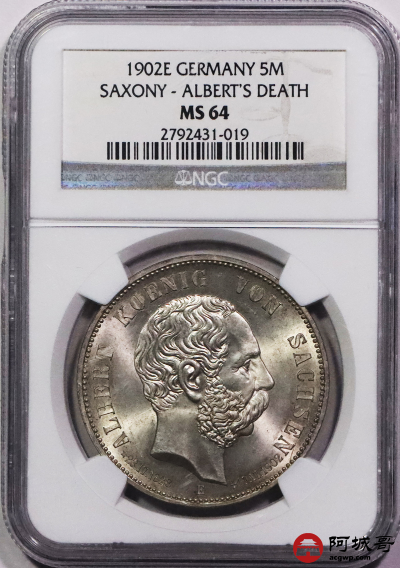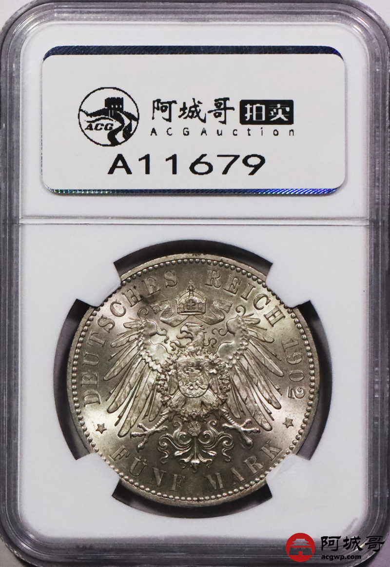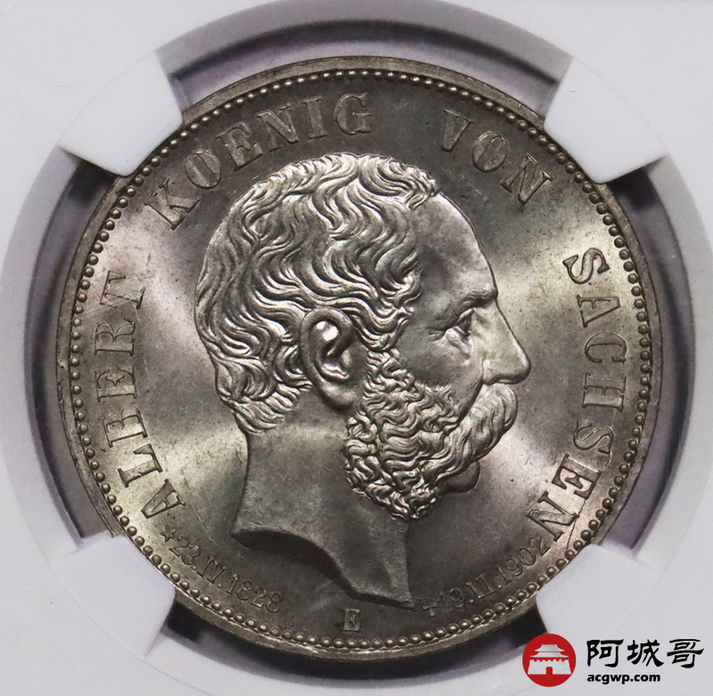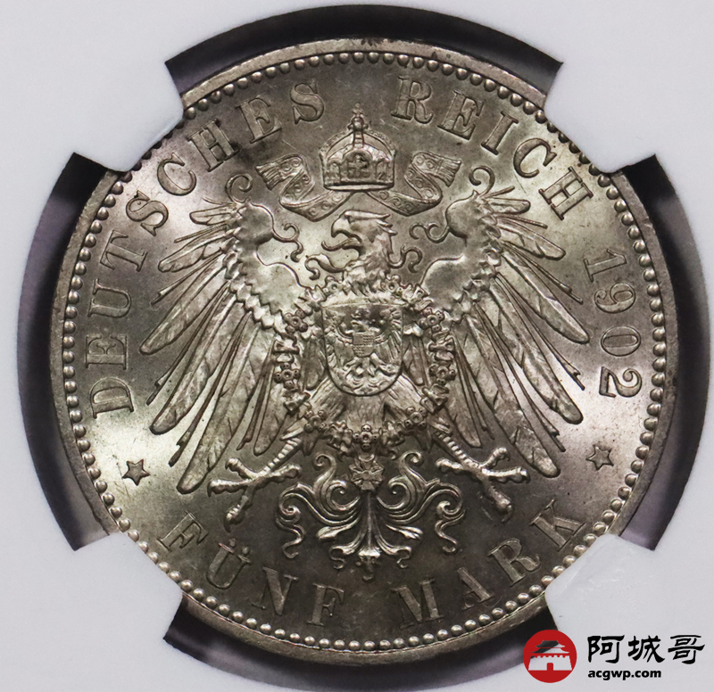 Lot:3688 1902年德意志帝国萨克森5马克银币一枚NGC MS64