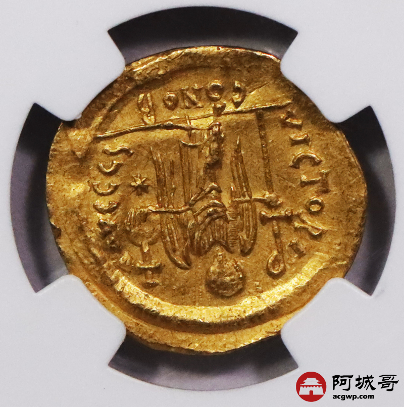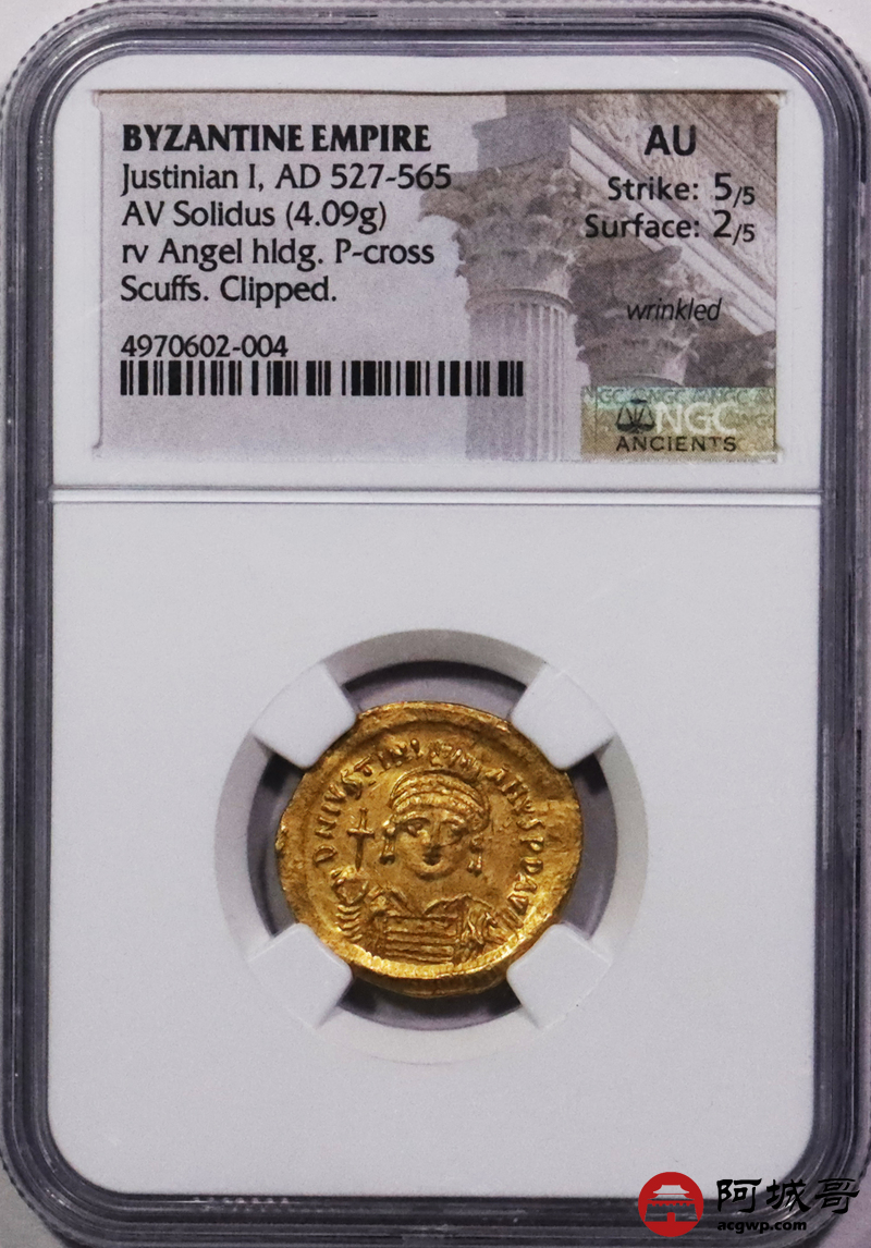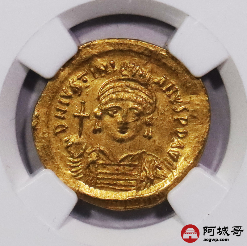Lot:3680 拜占庭帝国查士丁尼一世金币一枚,4.09g NGC AU