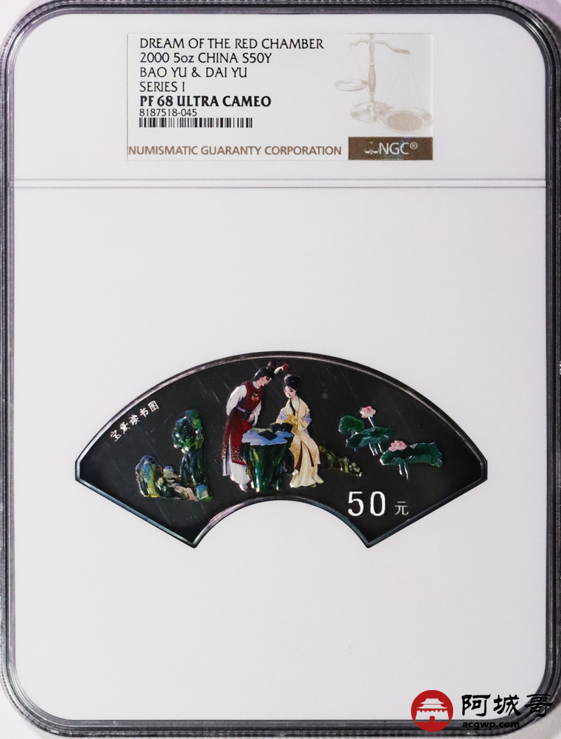 Lot:31 2000年红楼梦第一组5盎司彩色精致银币50元宝黛读书图 NGC PF68UC