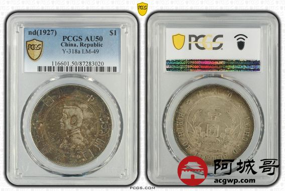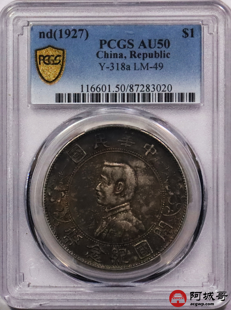 Lot:21 深打 酱彩包浆 孙像小头壹圆 PCGS AU50