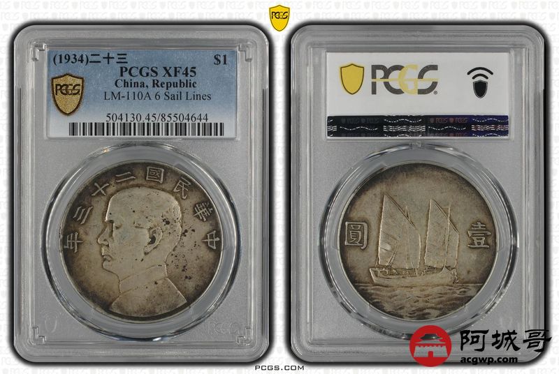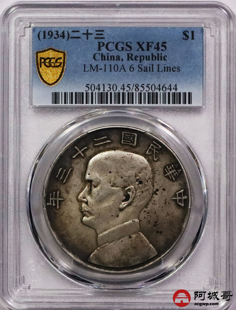 Lot:14 原味老包浆 二十三年船洋6绳版 PCGS XF45