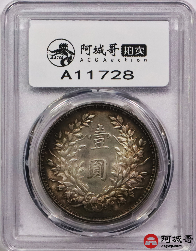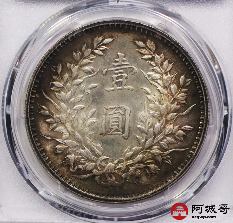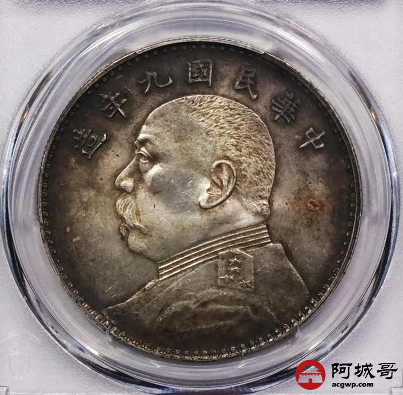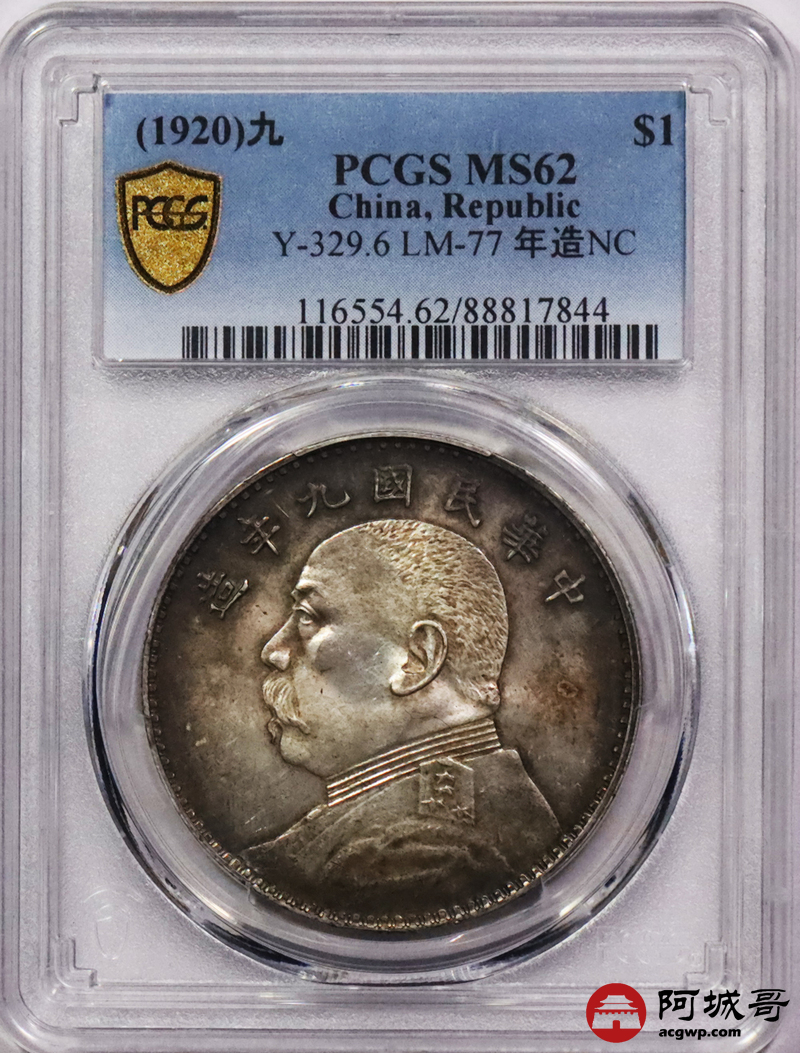 Lot:3518 1920民国九年袁世凯像壹圆银币一枚,环彩包浆 PCGS MS62