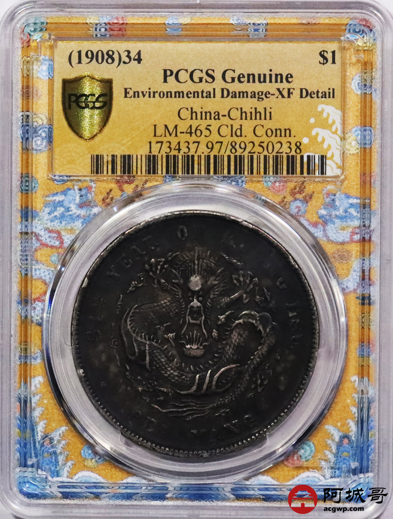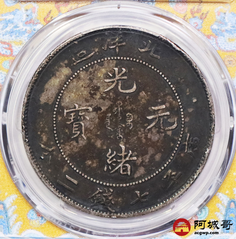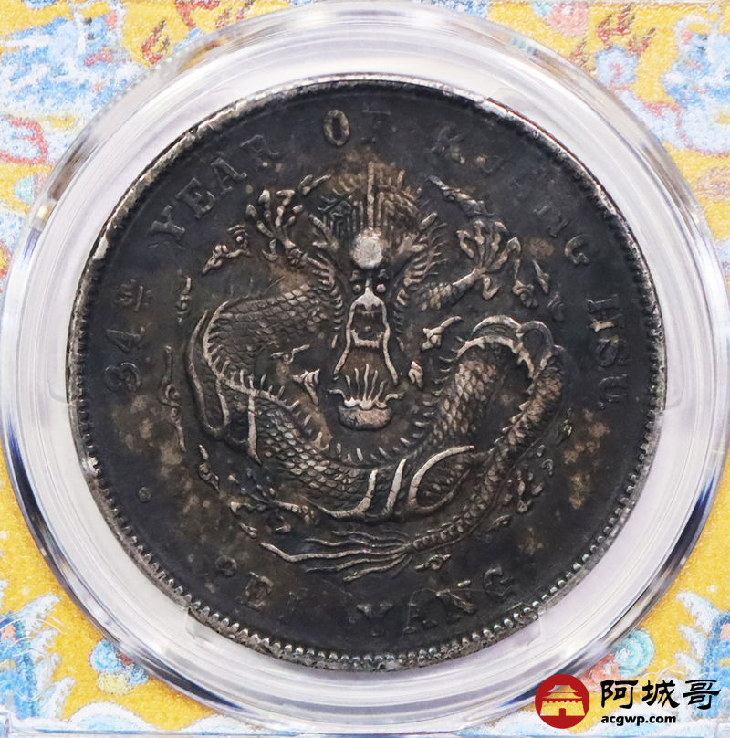Lot:3317 1908光绪三十四年北洋造光绪元宝库平七钱二分银币一枚,酱彩包浆 PCGS XF