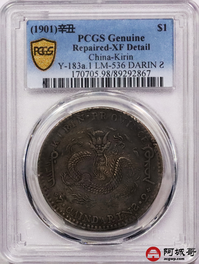 Lot:3397 1901辛丑年吉林省造光绪元宝库平七钱二分银币一枚,原味包浆 PCGS XF