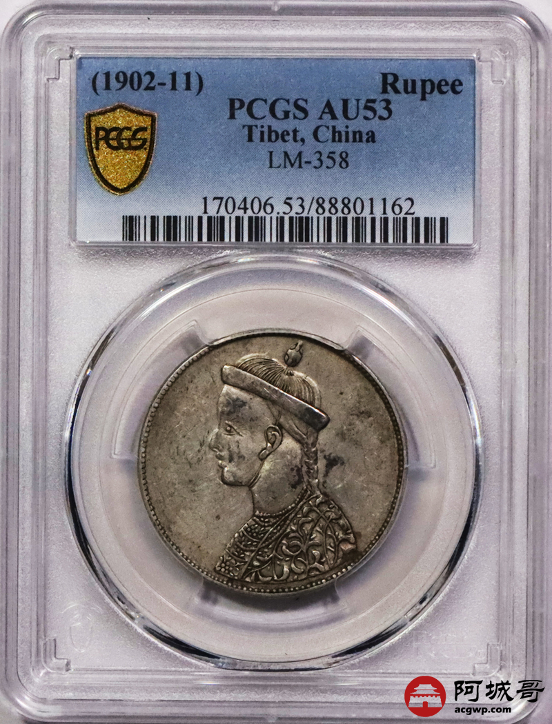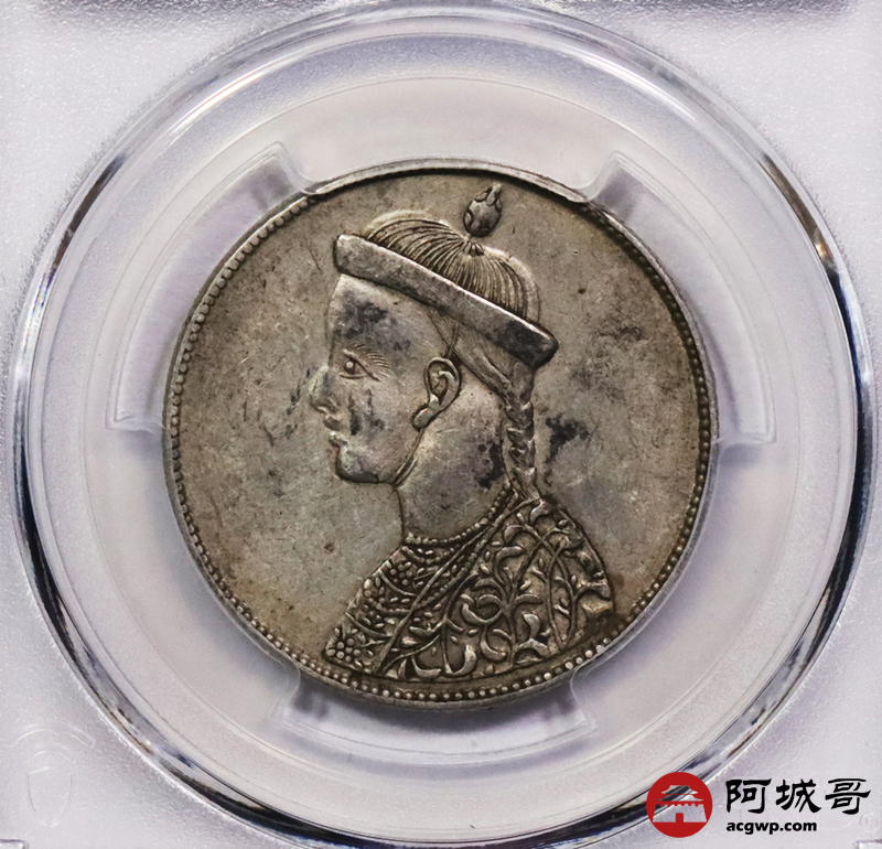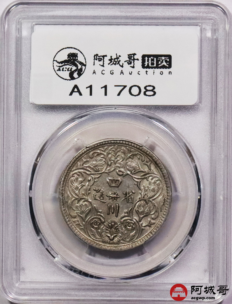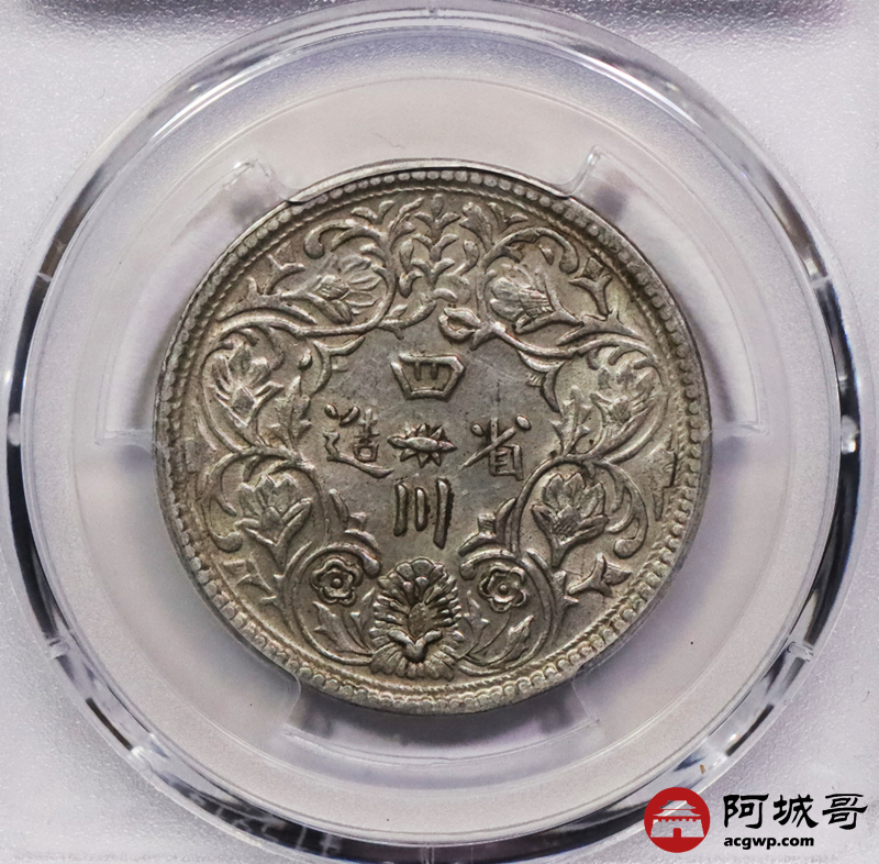 Lot:3259 1902-11四川省造光绪一期卢比银币一枚,无领横花版,黄油包浆 PCGS AU53